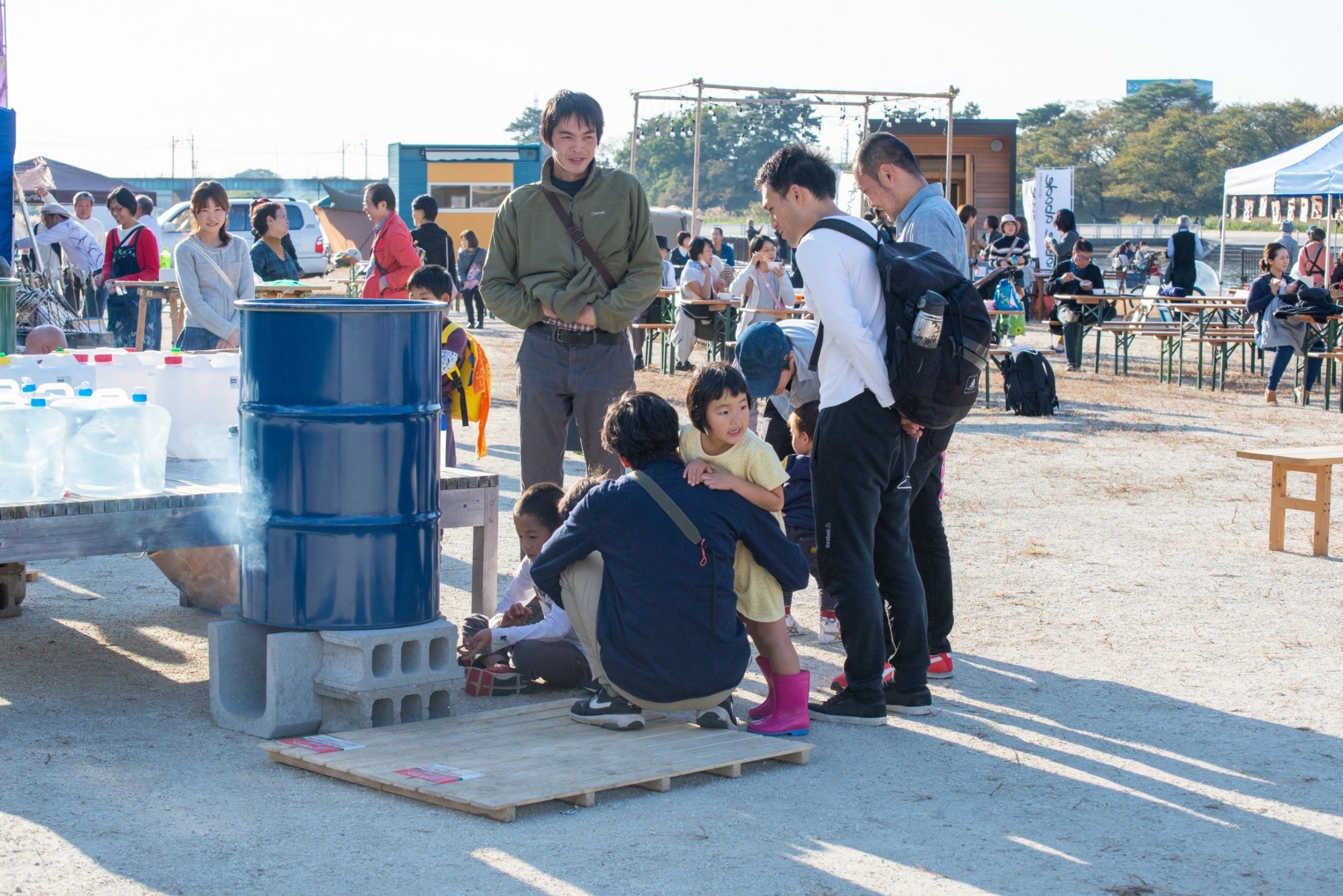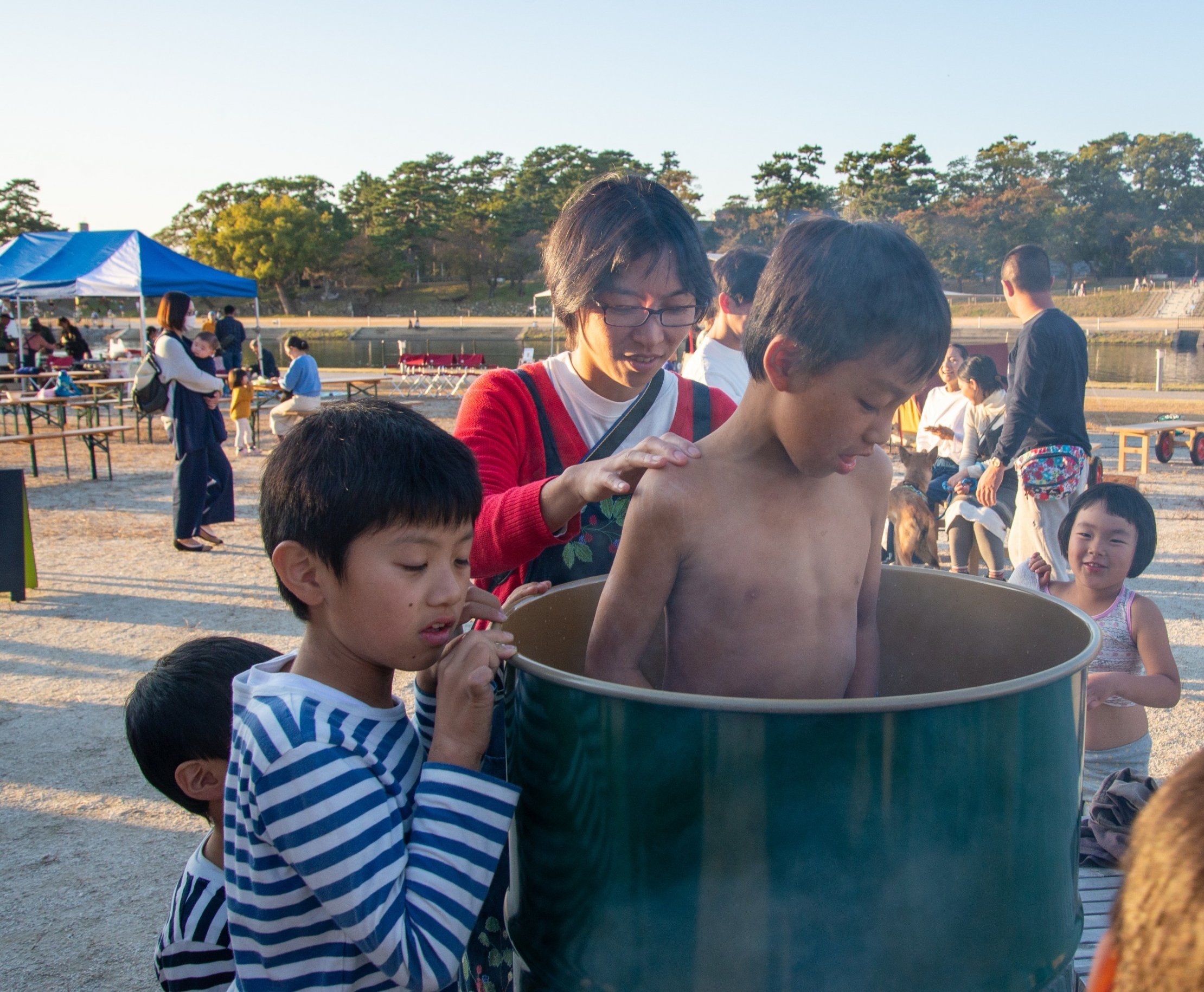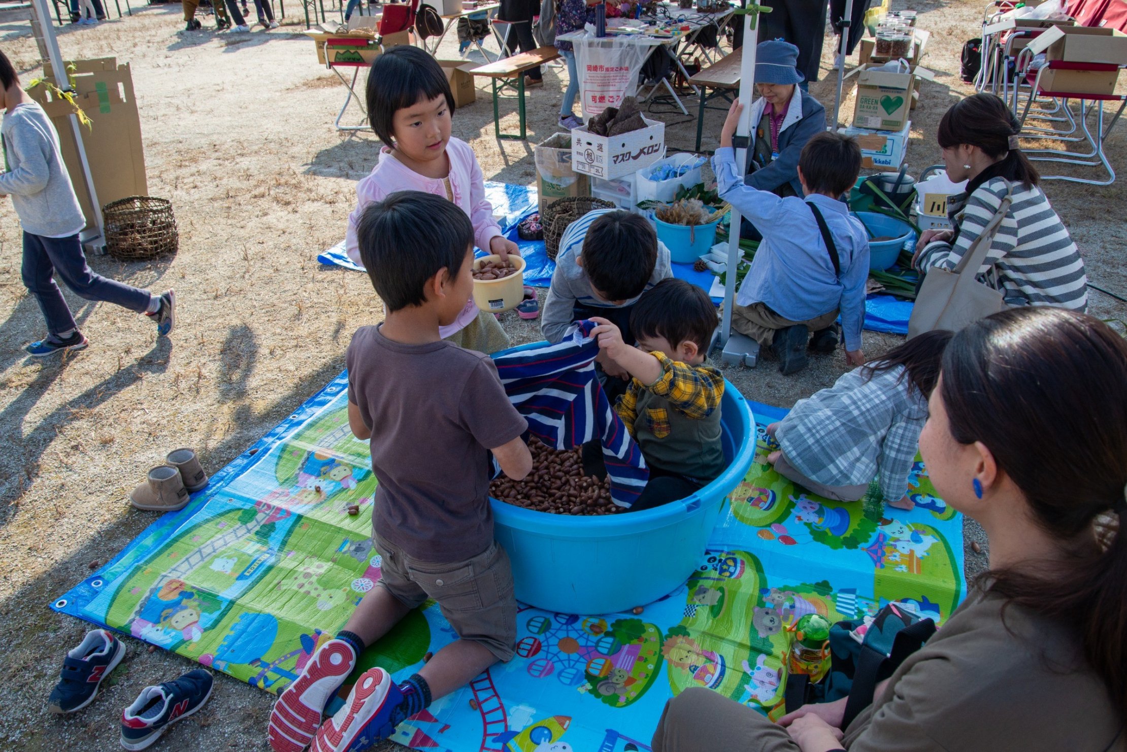 ドラム缶風呂やどんぐりプール、アクアボールなど、子どもたちが楽しめるプログラムもいっぱいありました。