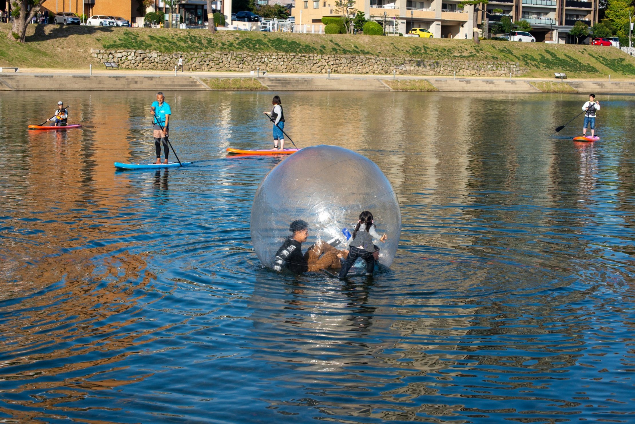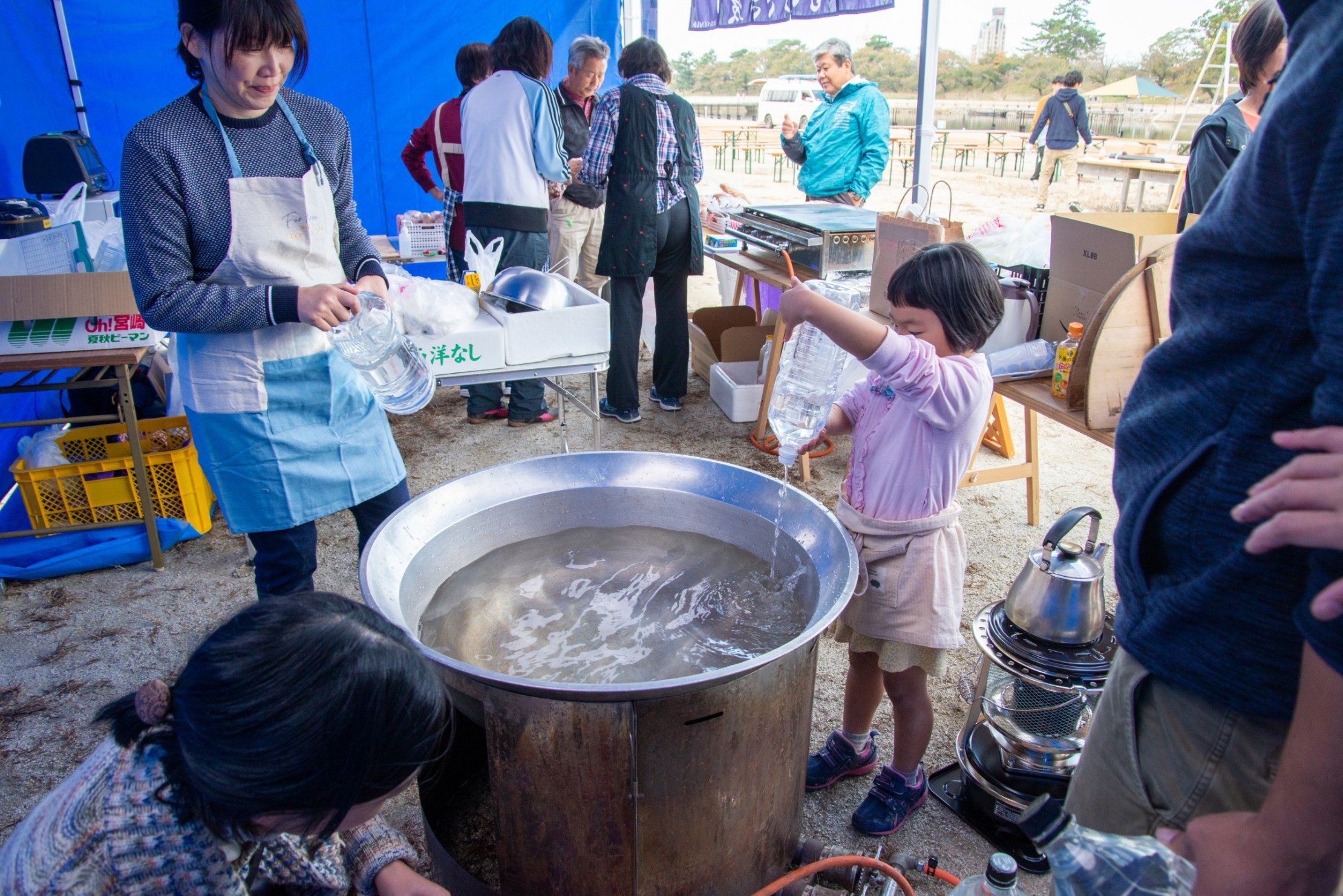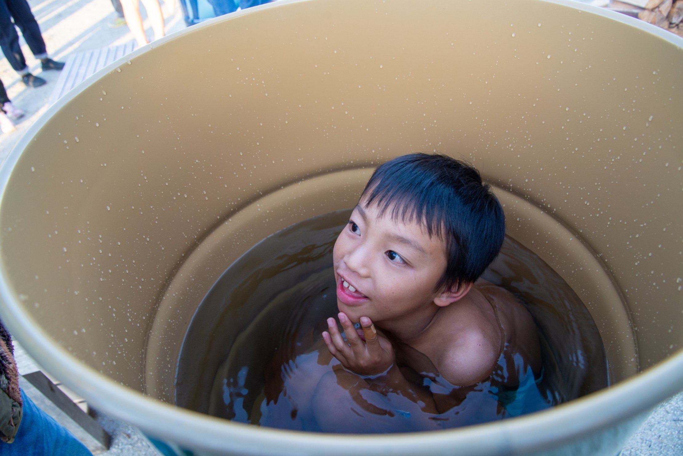 ドラム缶風呂やどんぐりプール、アクアボールなど、子どもたちが楽しめるプログラムもいっぱいありました。