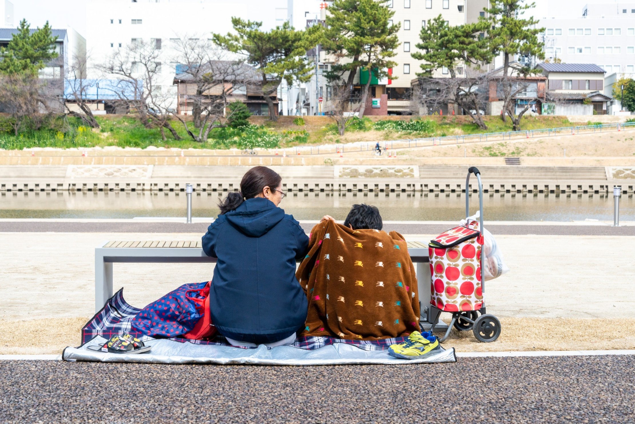河川敷にあるベンチをテーブル代わりにピクニックランチをしている親子連れに会いました。「このベンチの使い方新しいですね」と尋ねると、「私たちいつもこんな風に食べてますよ」とお母さんが笑顔で教えてくれました。乙川河川敷の工事が終わり、日中は暖かくなってきたので、乙川の外で過ごす人も少しずつ増えてきました。