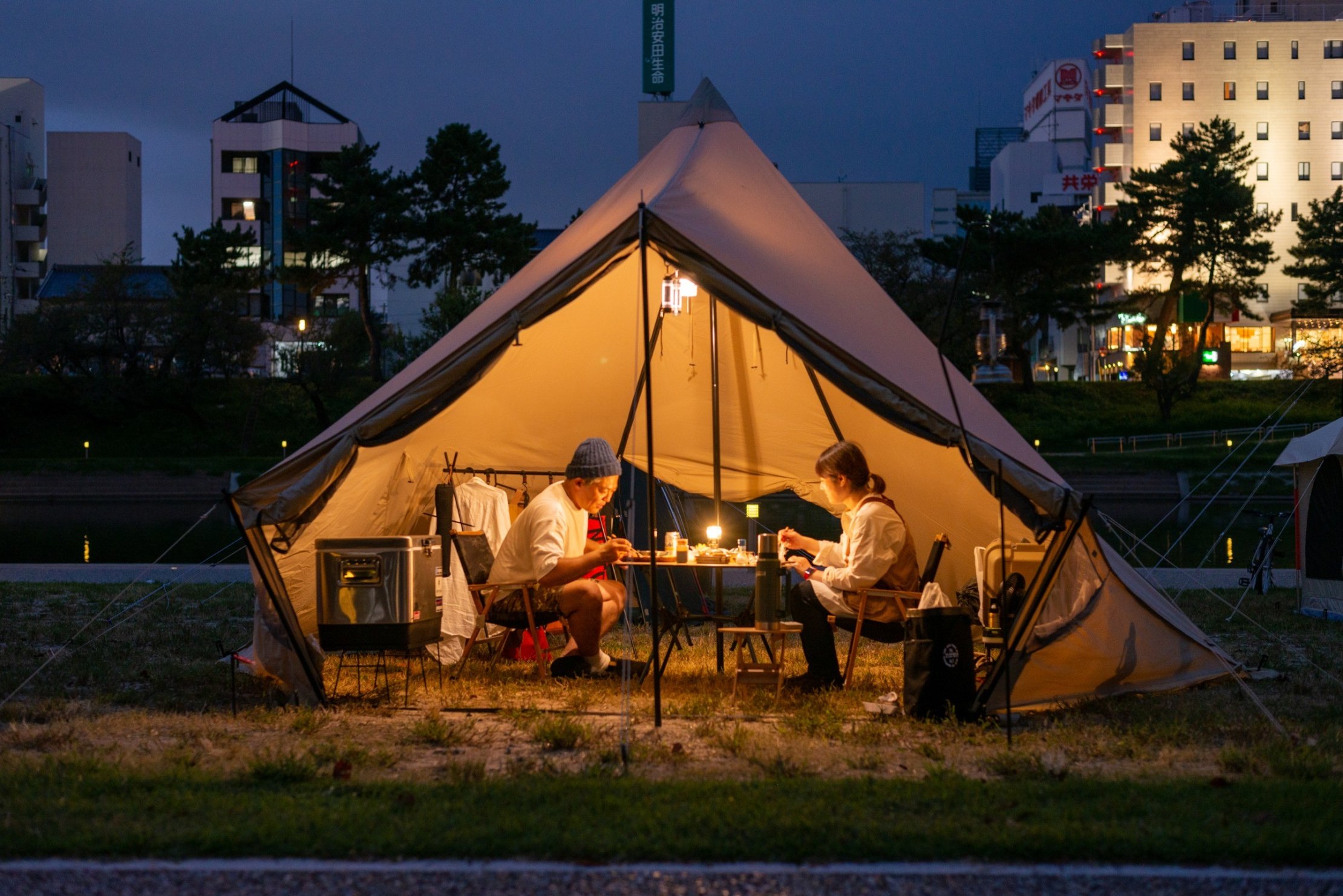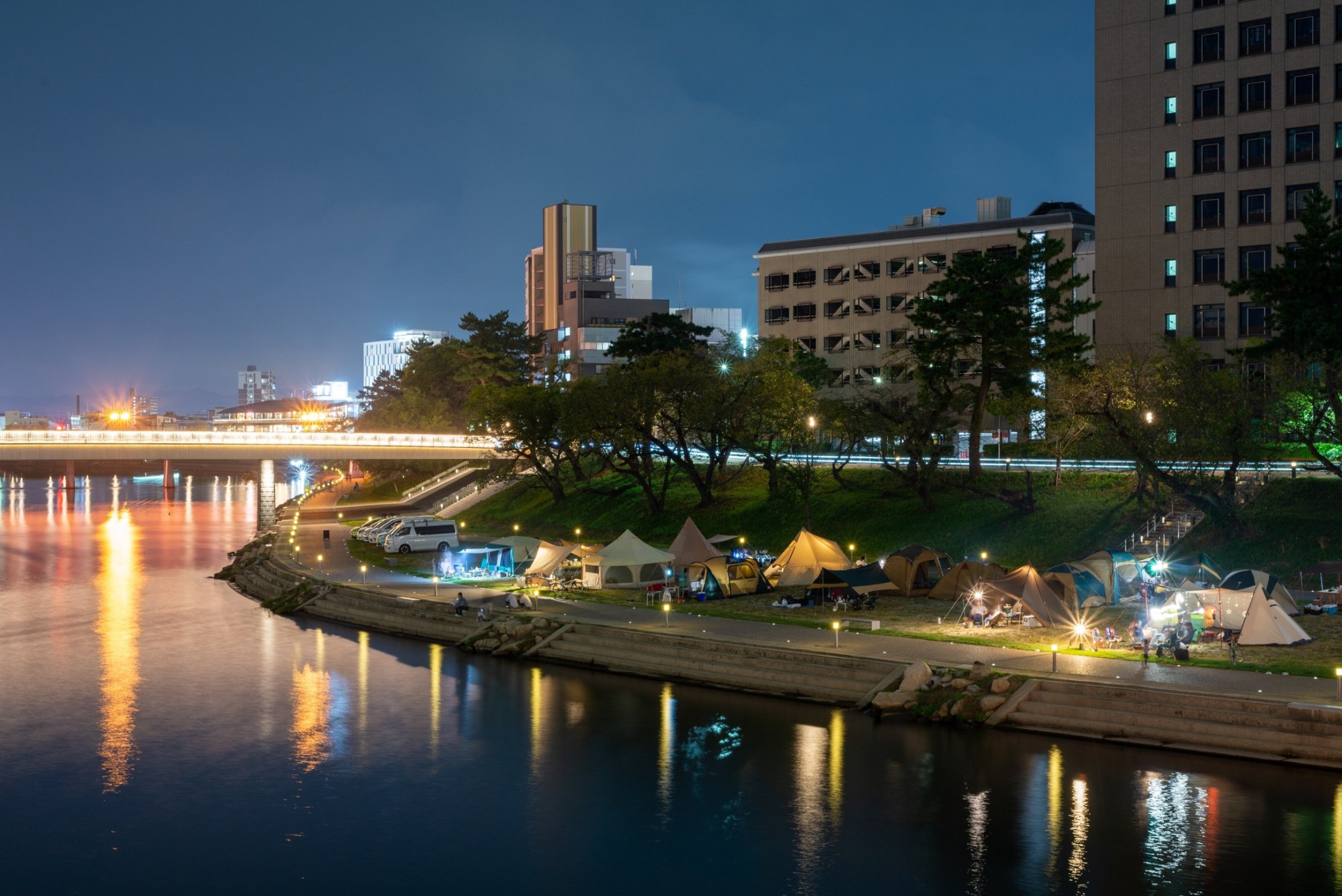 週末キャンプ企画「Let it Camp」。この日もはじめてキャンプをしますという方々が参加してくれました。「まちなかでのキャンプは安心感があって、はじめて行うには良いですね!」と。乙川でキャンプデビュー!また一つ素敵な思い出が生まれました。