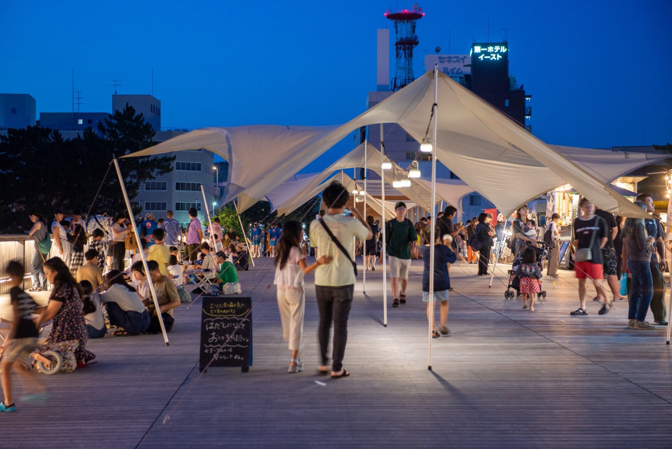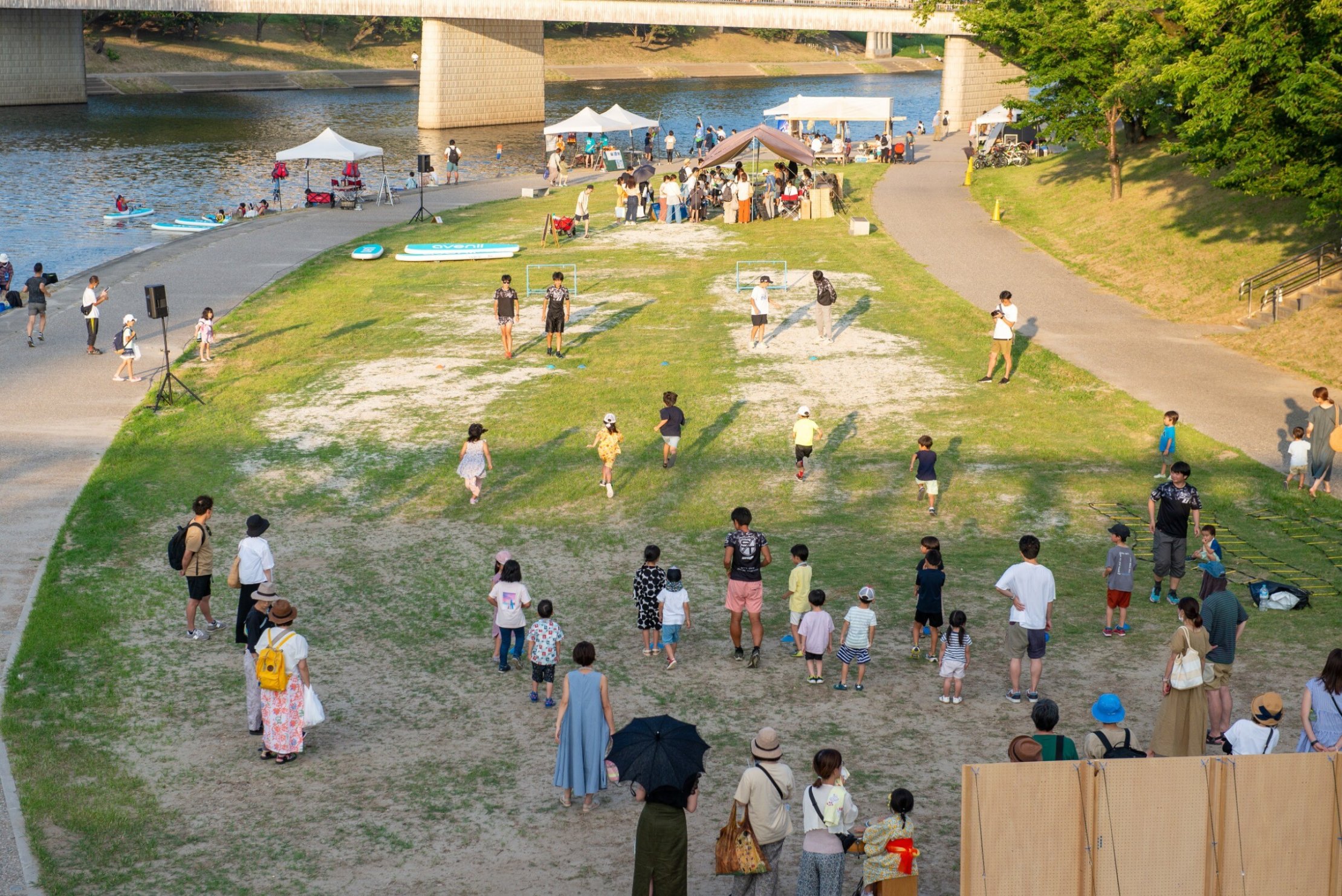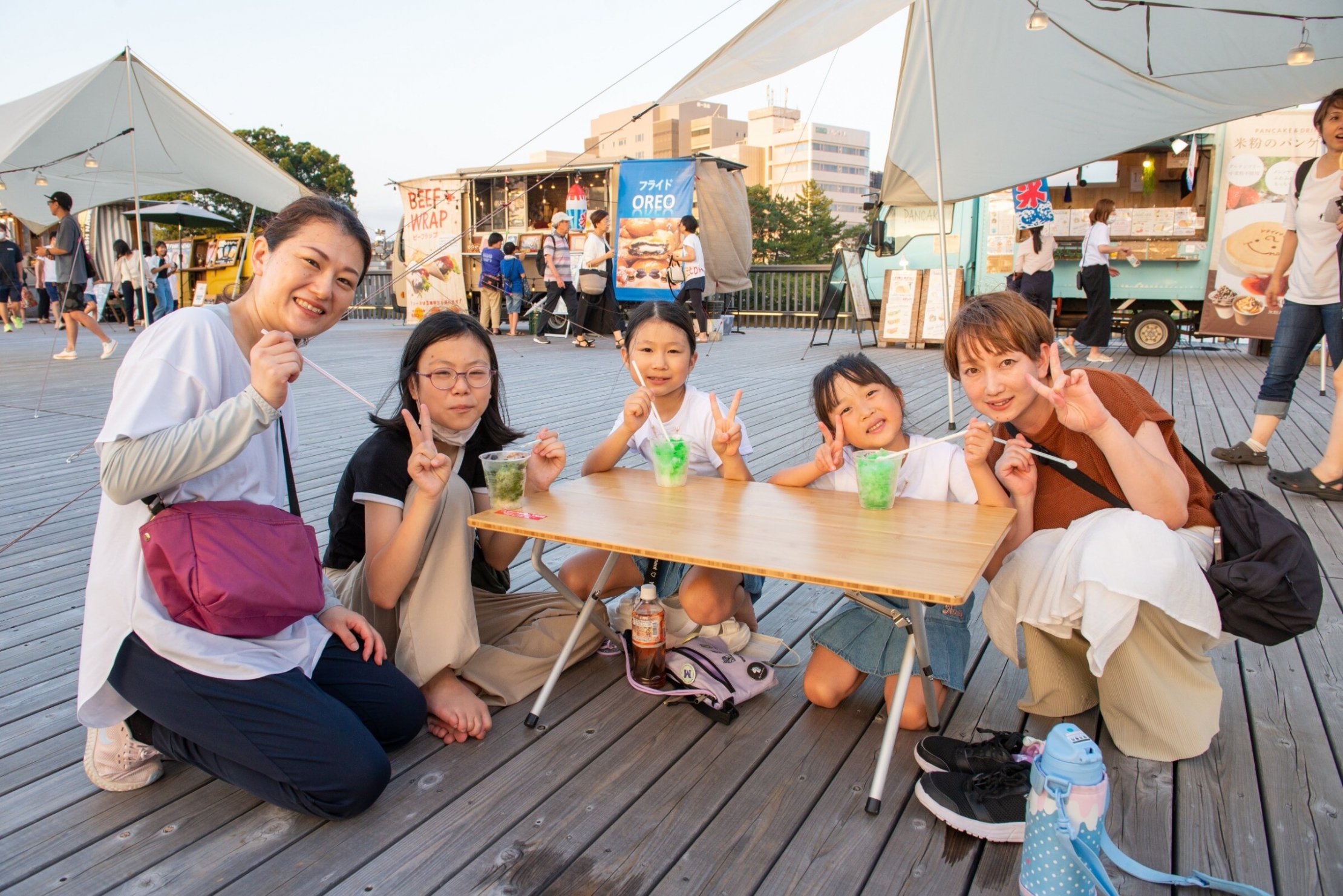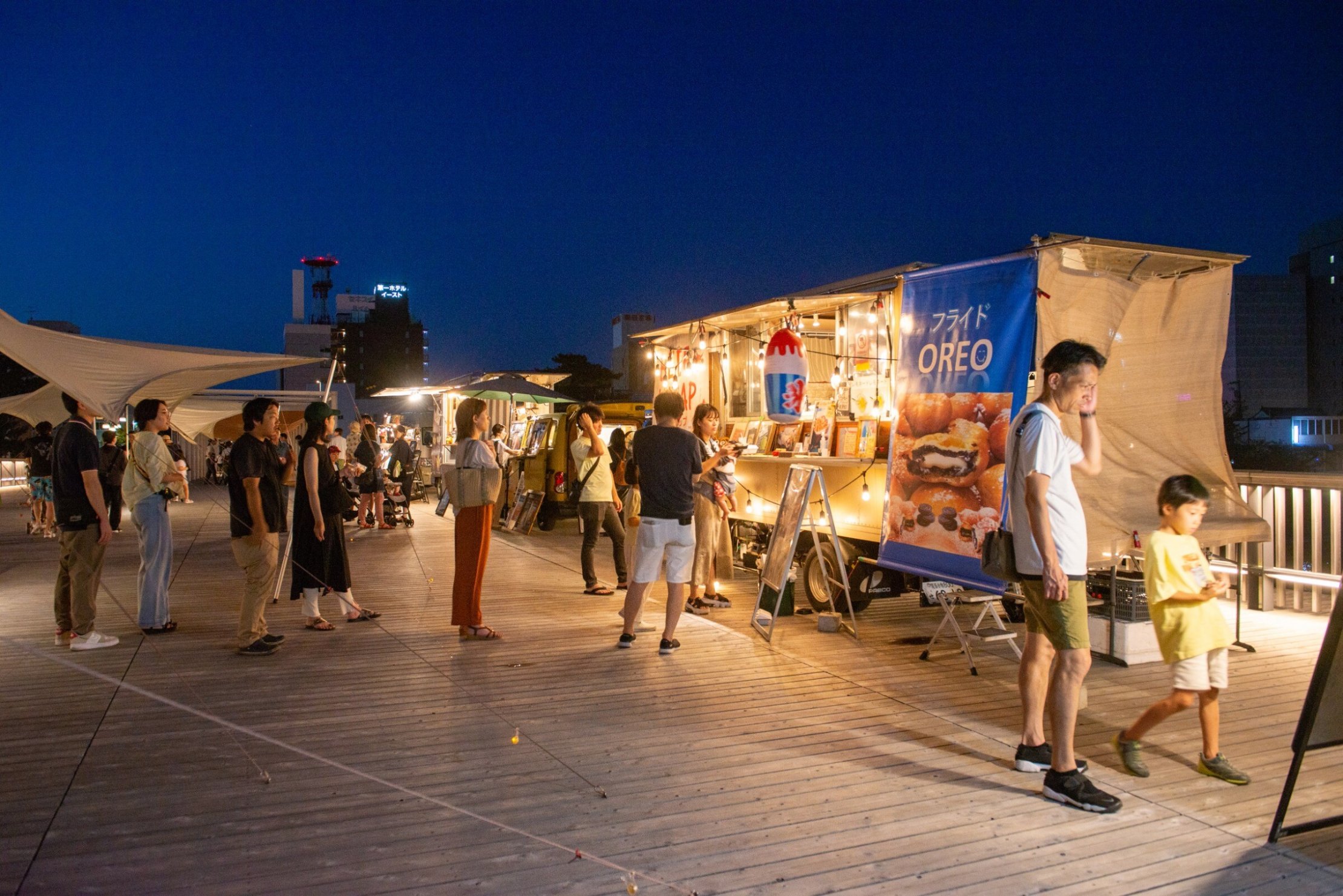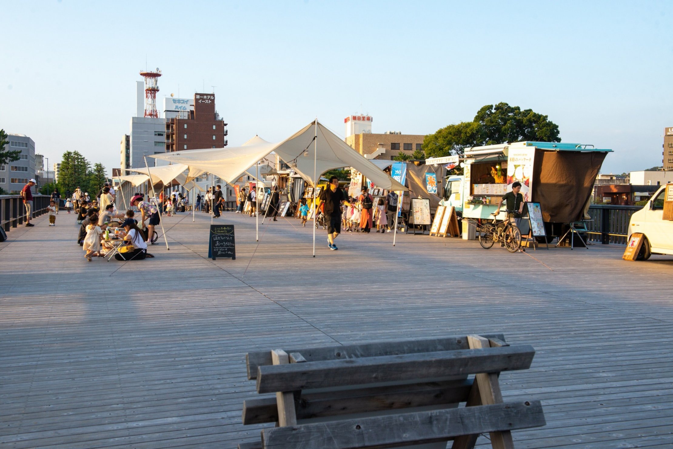 涼しくなると、キッチンカーのある橋の上でたくさんのひとがくつろいでいました。