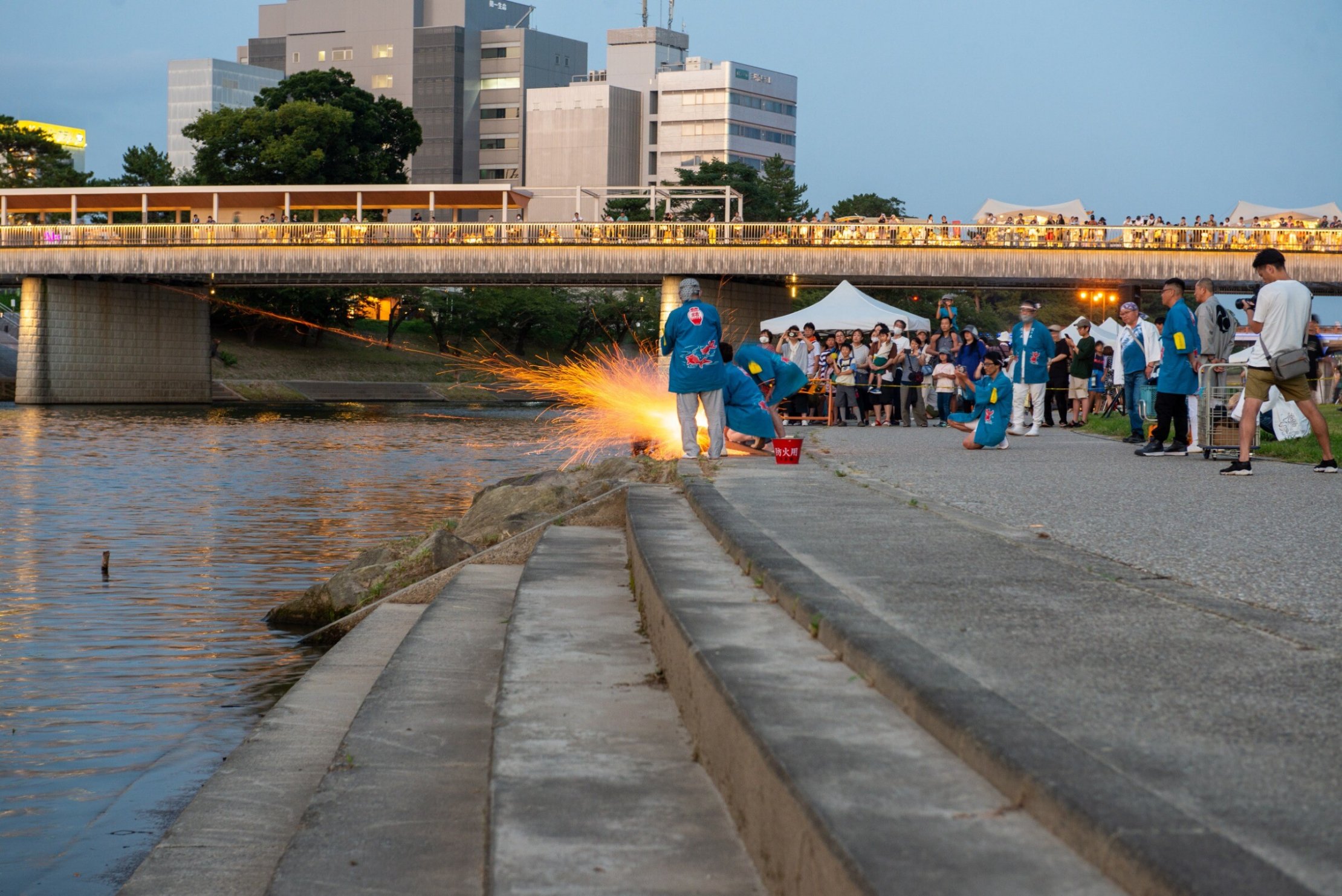 金魚花火の打ち込みが見れるのはここを含めて年3回程度、ずっと残していきたい岡崎の風景。