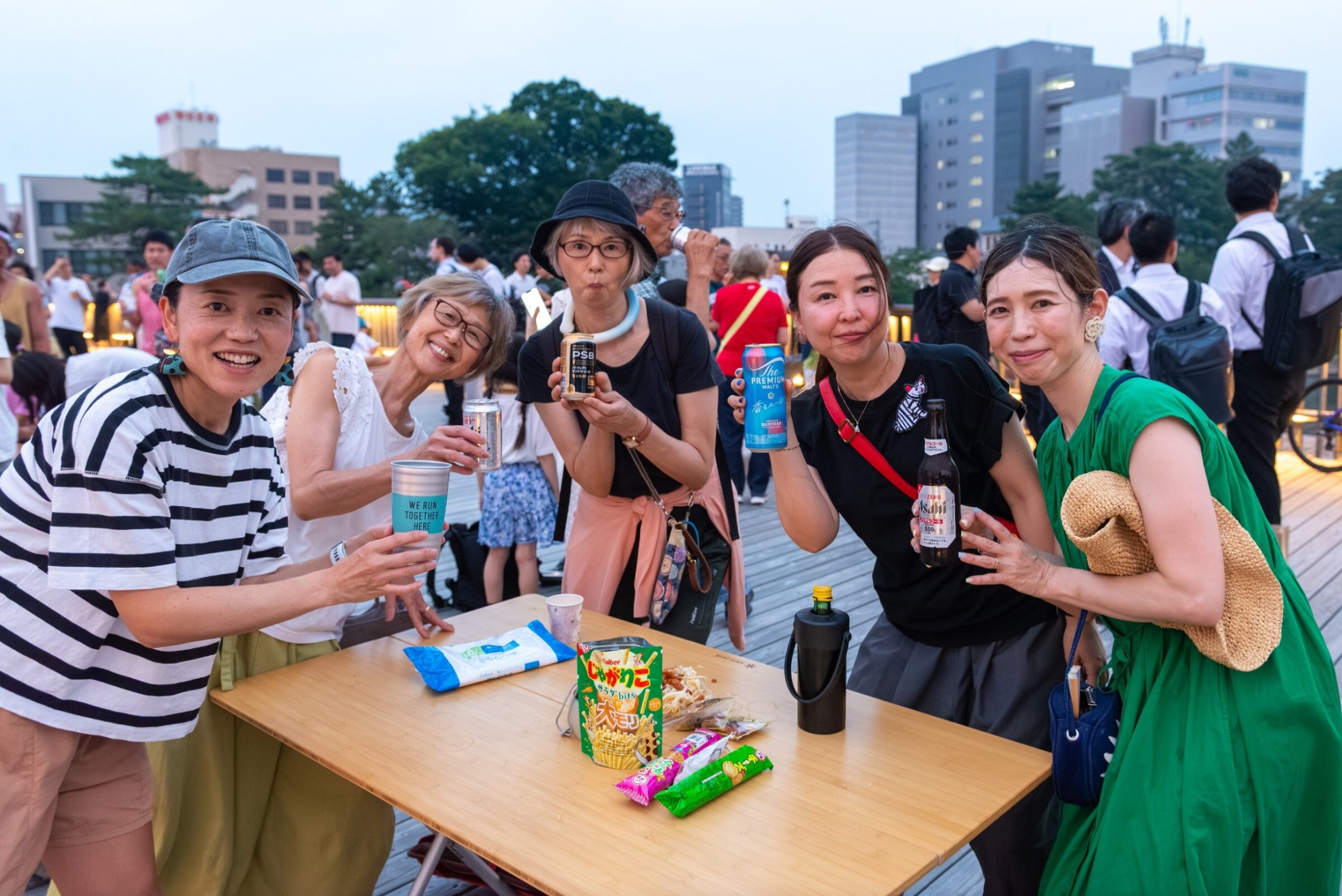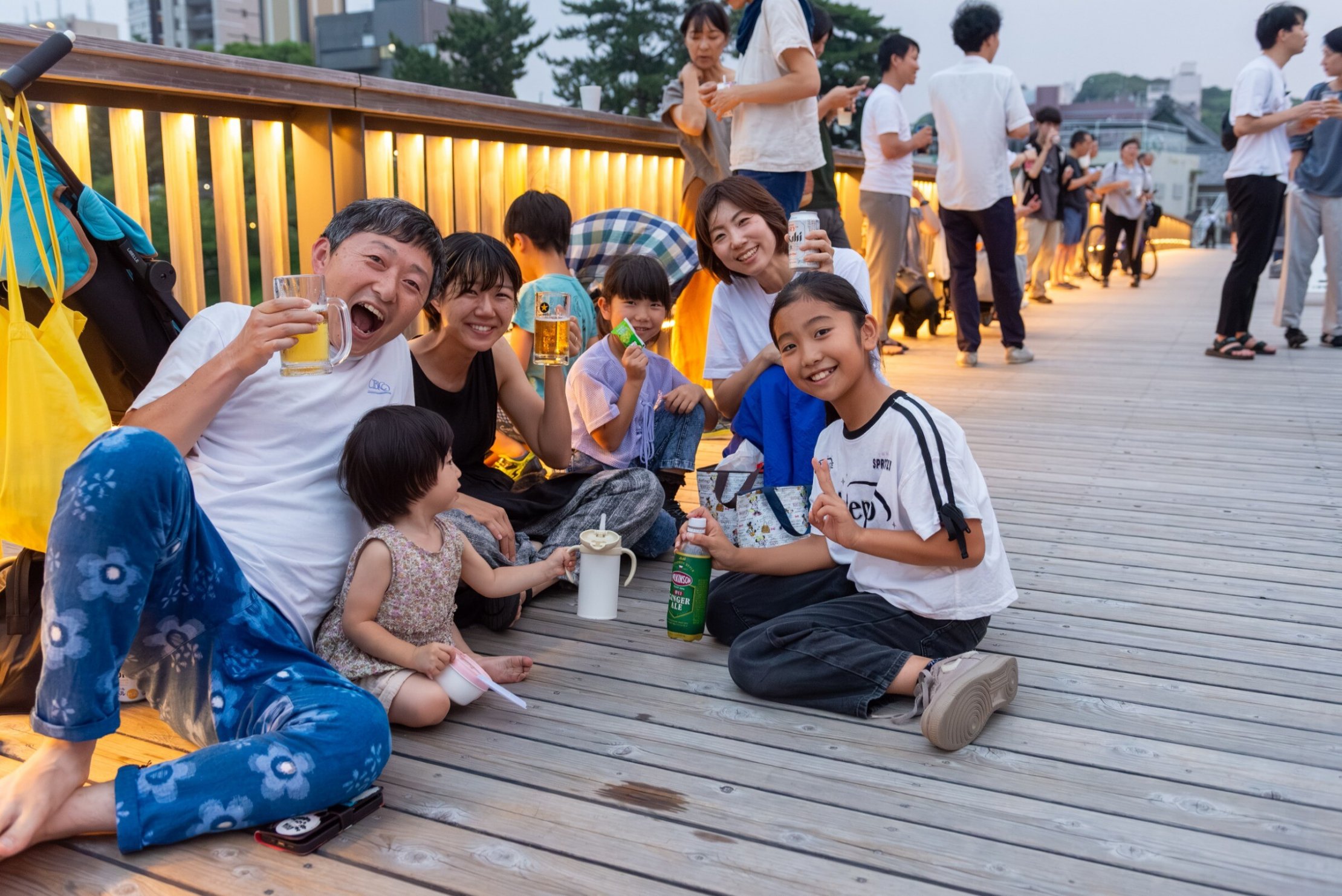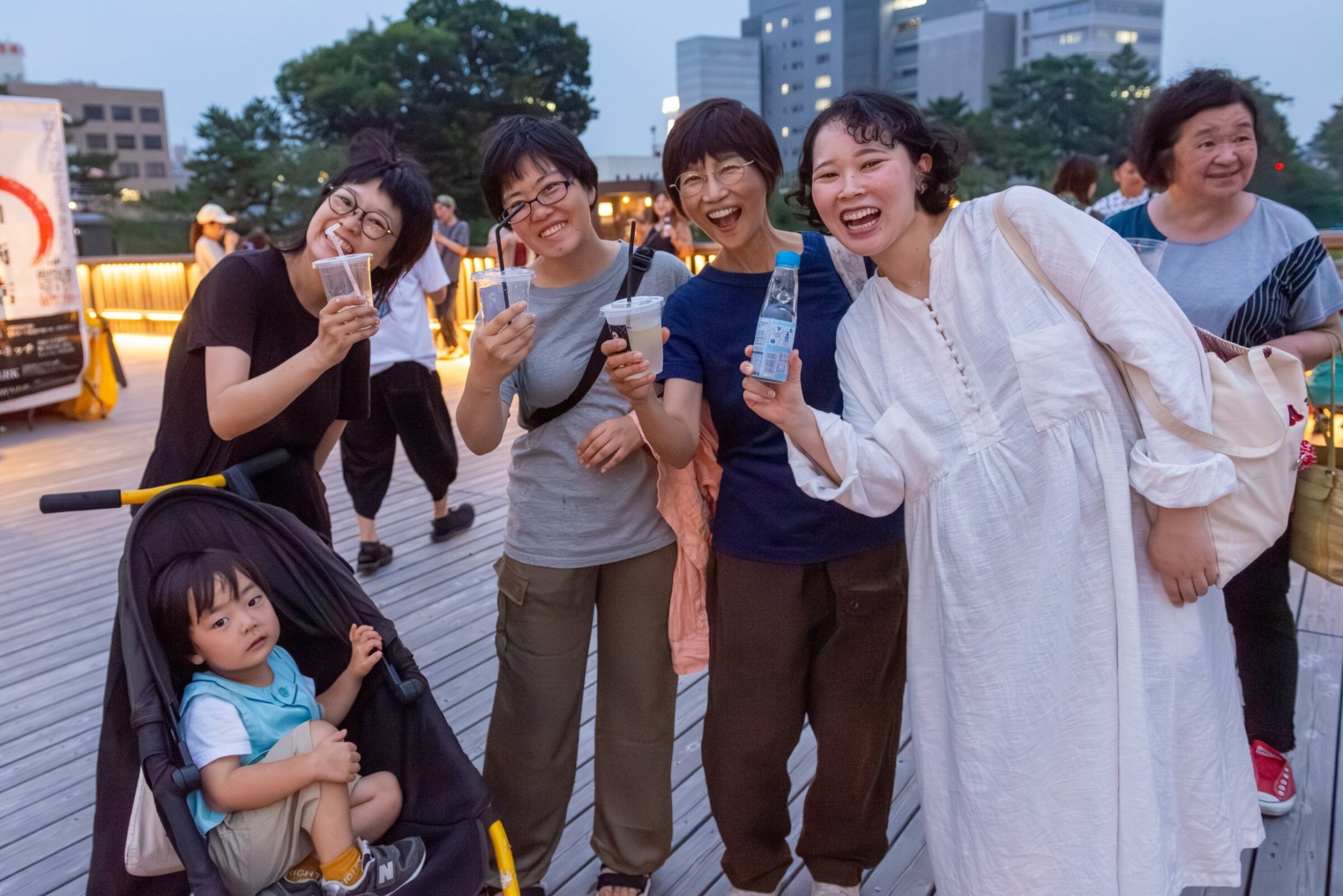 今年も水辺で乾杯には平日にも関わらずたくさんの方にお越しいただきました。令和7年7月7日と7がつく日だったこともあり、名前が7文字の方に乾杯の発声をお願いしました。この場所でいつも会える人たち、挨拶できると心がほっとします。(山田)