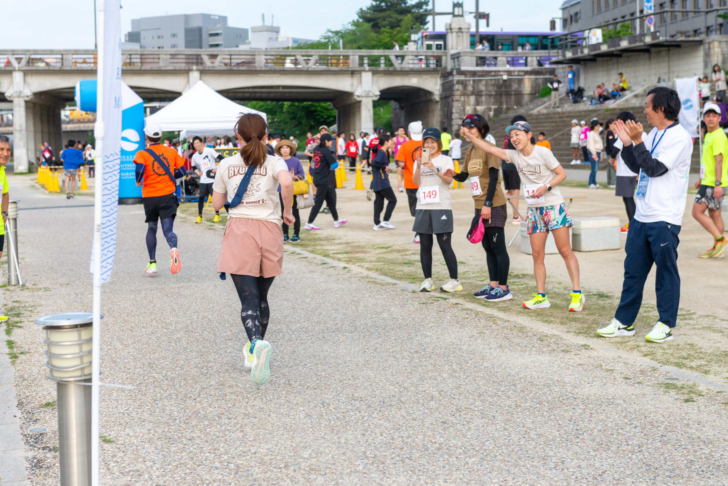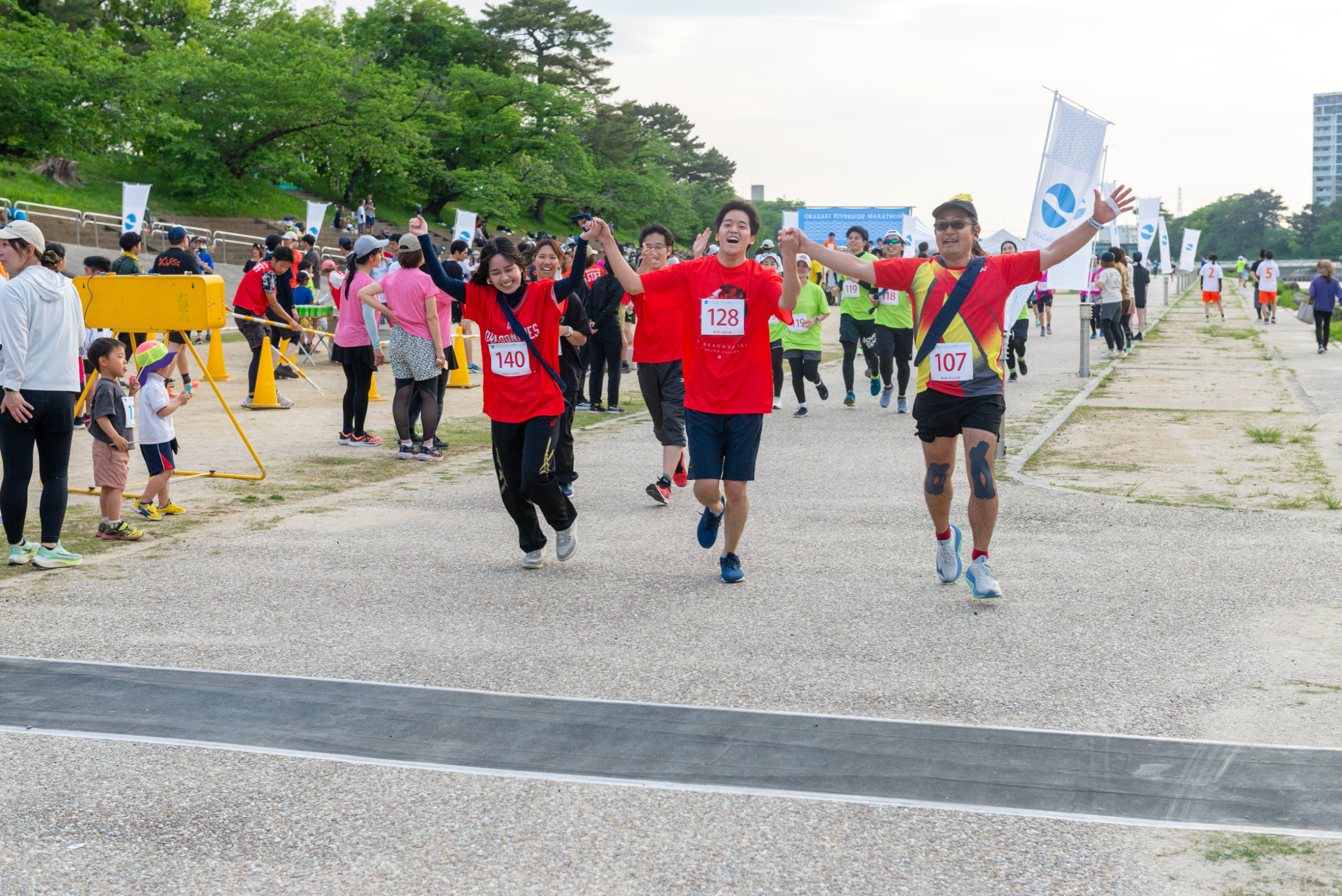 一方、ランニングイベントの宿命として、ゴール後は流れ解散となるため、参加者同士で応援し合ったり、ゴールを称えあえるようなシーンをもっと作りたい!と思い、昨年、そこから新たに立ち上げたのが今回の「オカザキリバーサイドリレーマラソン」です。