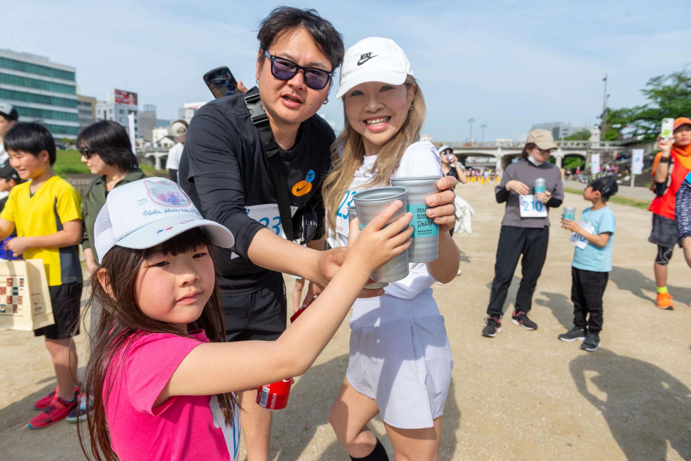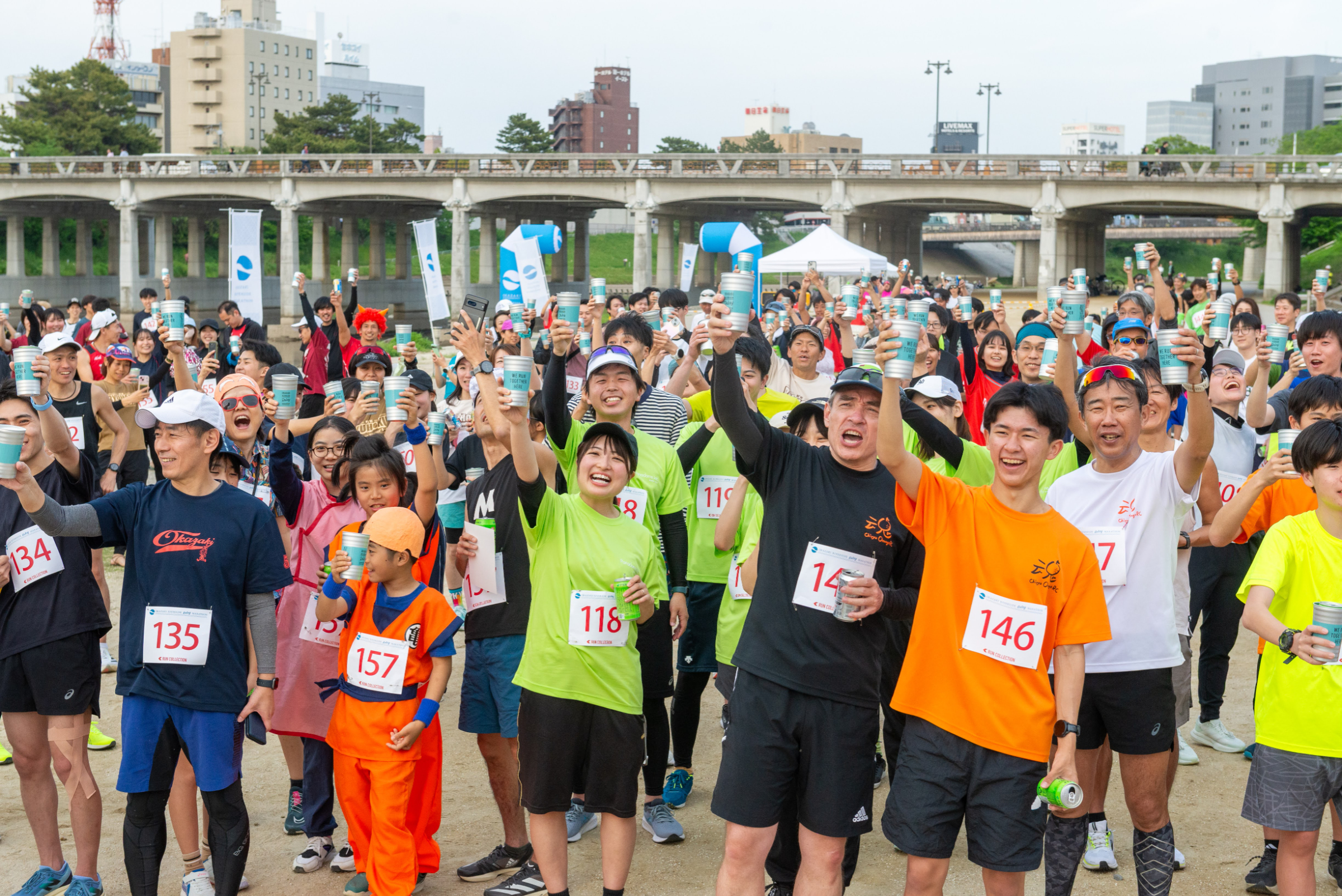 リレーマラソンは自分が走る時間よりも、チームを応援する時間が長かったり、ゴールの時間も全チームほぼ同じ時間帯です。そんな特徴を活かして、ゴール後に参加者全員で「みんなお疲れ様でした!カンパ~イ!!」をしましょう!というのが本大会で一番実現したいことなんです。そのため参加賞として特別デザインの「オリジナルカップ」とドリンクを用意しています。僕自身も仲間とランニングイベントに出た後は打ち上げに行って乾杯している時間が大好きです!やっぱりランニングイベントと乾杯って仲がいいんですよね、きっと(笑)