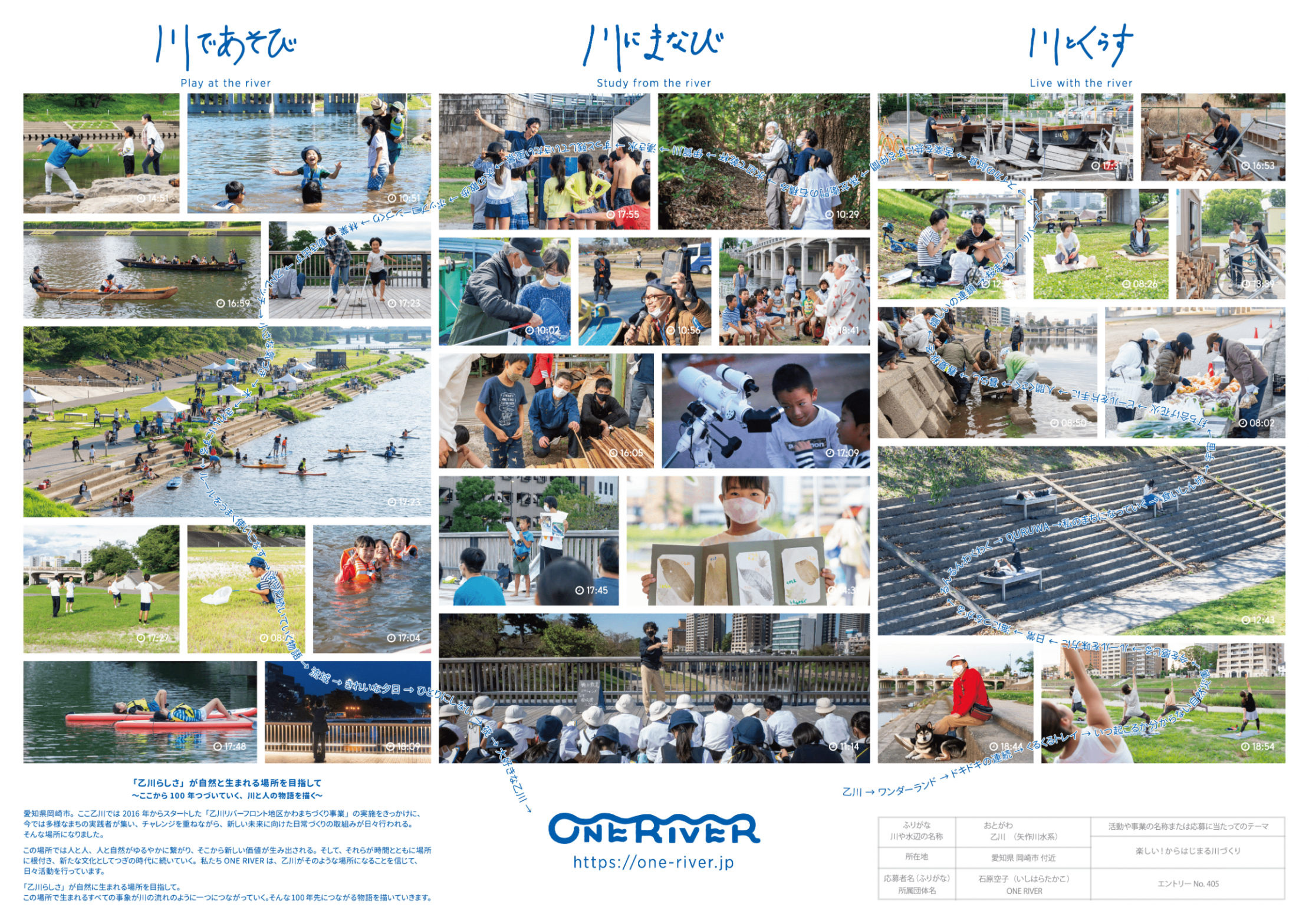 ONE RIVERも愛する乙川の魅力を存分に語ってまいりました。残念ながらグランプリは逃しましたが「乙川で多くの人のつながりが広がるで賞」をいただいてまいりました!また、多くの有識者や他地域の団体ともつながることができ、今後の活動にも良い刺激になりました。