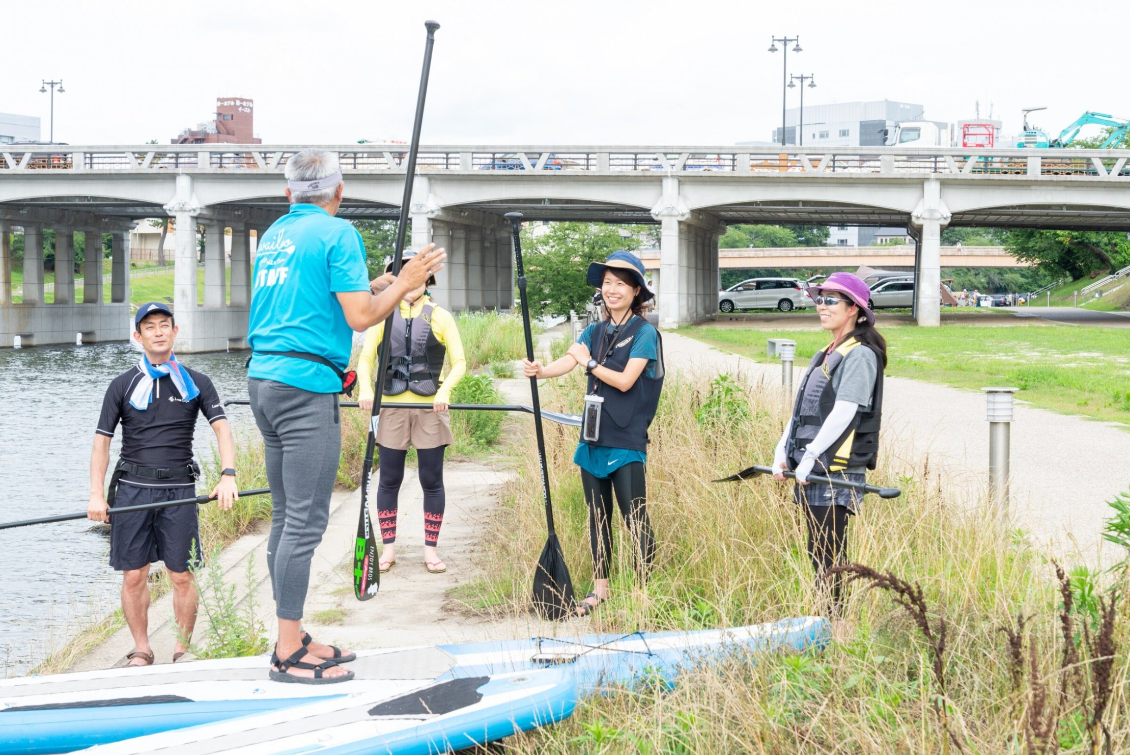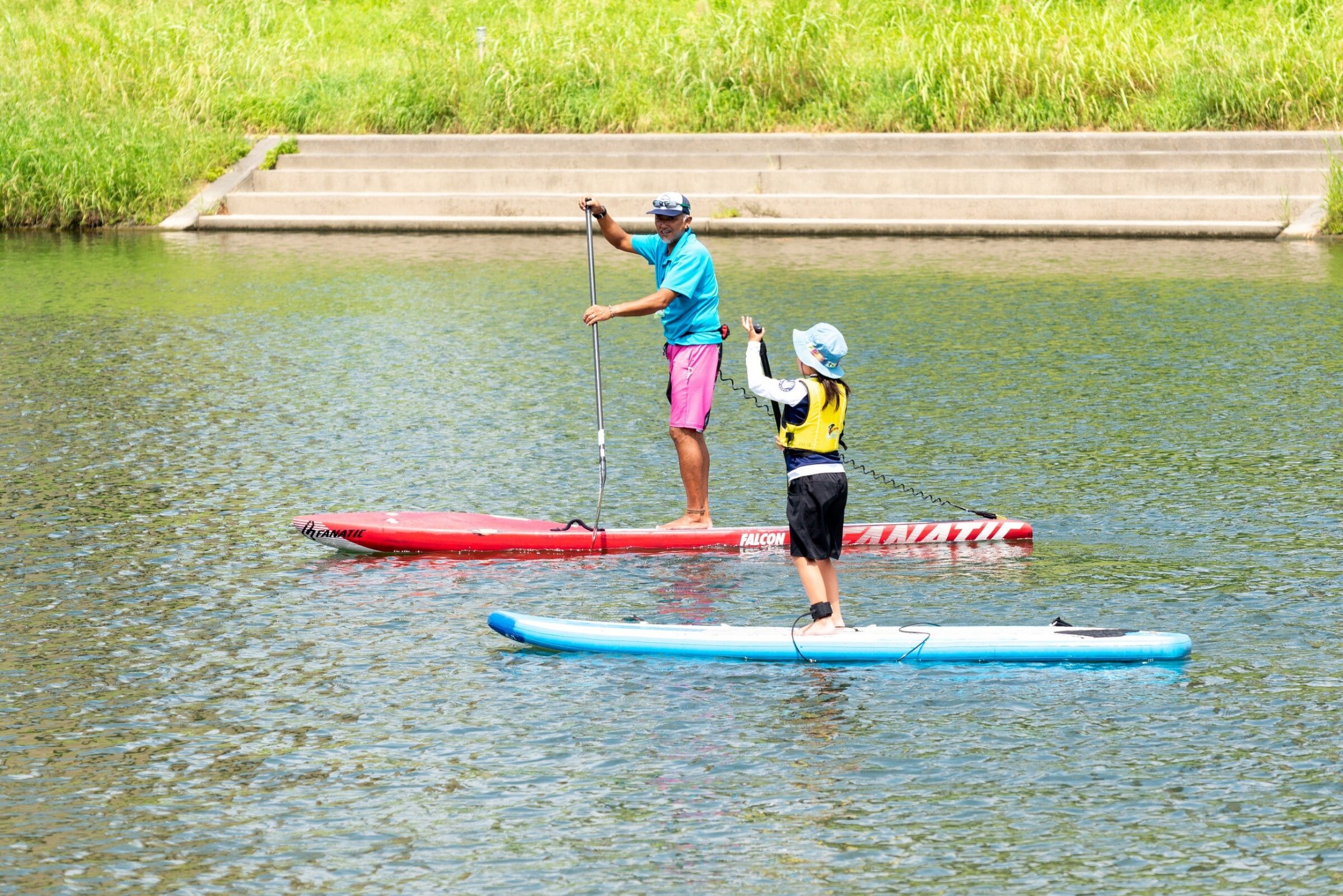 水上スポーツが楽しくなる夏!まずはここ乙川でのSUP体験から水上の楽しみをぜひ見つけていただければと思います。きっと知らなかった乙川の魅力を発見することができます。(岩ヶ谷充)