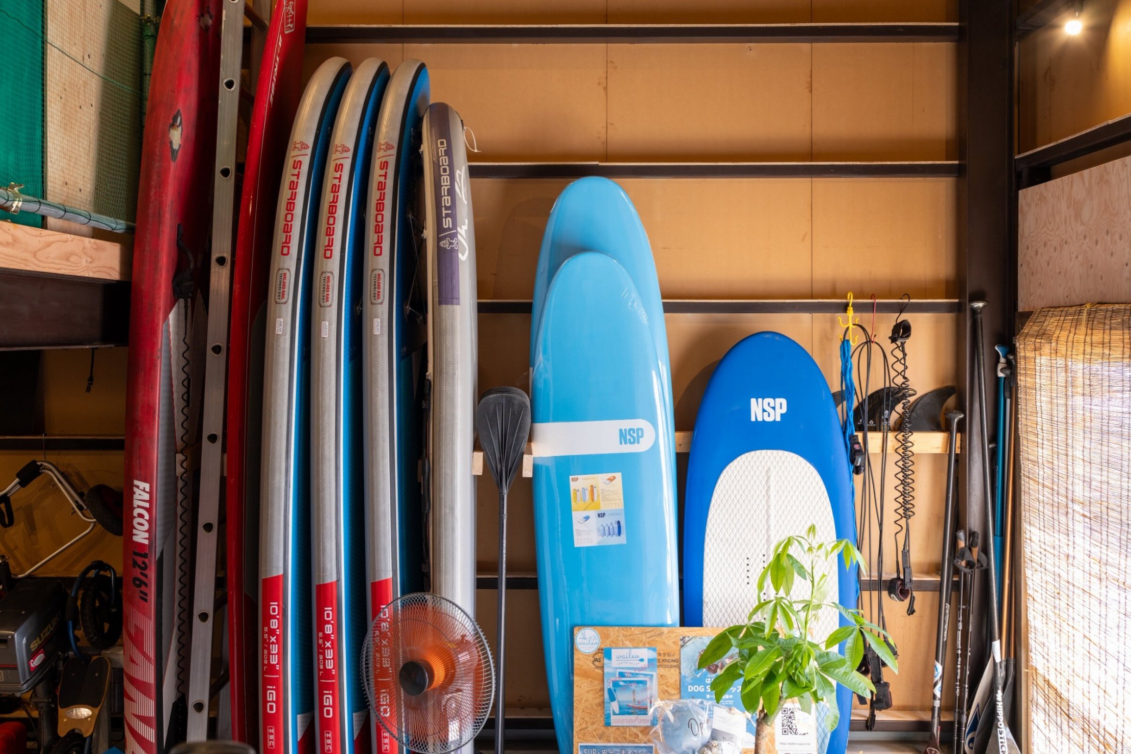 クラブハウス(今回の新拠点のこと)では、乙川でのSUP体験を随時実施しながら、水上を楽しむためのアイテムを購入することができるショップ機能も順次はじまります。ボード類各種はお店に在庫もありますが、それ以外の予約注文も可能です。SUPサーフィン元全日本チャンピオンの浅野さんから直接アドバイスをもらいながら、ご自身にあったアイテムを購入することできます!さらにクラブハウス内にはシャワー室・更衣室も完備されており、水上を自由に楽しむwatermanの皆さまが自由に集い交流することができるフリースペースもあります。