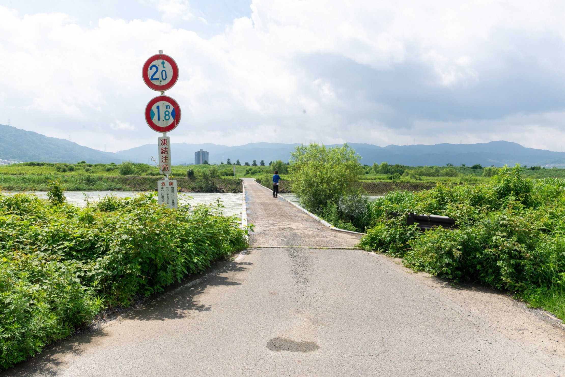 亀岡市には、まちの中心を保津川下りで有名な保津川が流れています。保津川は、古くから田畑に水を供給し上流の木材を運ぶためにも使われていたまさに生活のすぐ隣にある川だったようです。しかし一方で、度々氾濫もあり人々は水害にも悩まされていたそうです。今回実際に現地で見ると川の付近には霞提があったり、少し小高いところに旧道のような道があったりと川とともに暮らす人々の工夫を感じることができました。地形や歴史から、まちの成り立ちや、川と人の営みを読み解く力は乙川での活動を通じて培ったもの。その力を使って知らないまちを歩く旅は想像以上にワクワクするものでした。トーク配信でも、まちあるきのおかげで、お二人の言葉から自然と風景を思い起こすことができました。これからも、自分の五感や心で感じることを大切にしながら、様々なまちを歩いてみたいと思います。(石原)