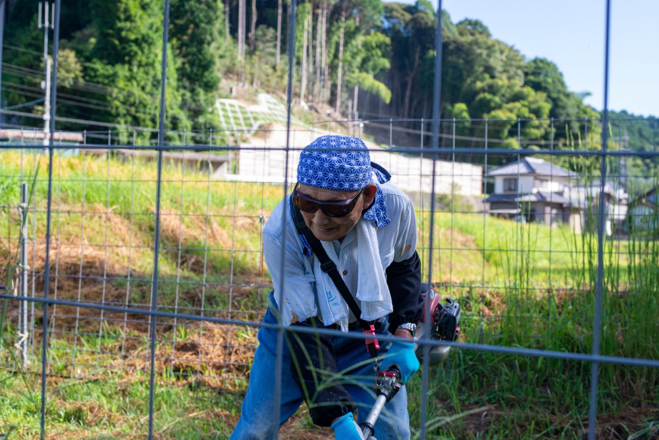 参加者の皆さんが安全に、楽しく稲刈り体験ができること。そのための準備としてこの日はあぜ道の草刈りをしていました。美しい田園風景を背景に、体の一部のように草刈り機を扱う先人たち。その背中が私には、「自然とともに暮らす(言い換えると自然の時間で生きる)ことが当たり前」で「人にとっても無理のない(不自然でない)生き方」だと語っているように見えました。普段まちで働いているからこその感想かもしれませんが、この風景を見て感じた印象はずっと心に残ると思います。(西村)