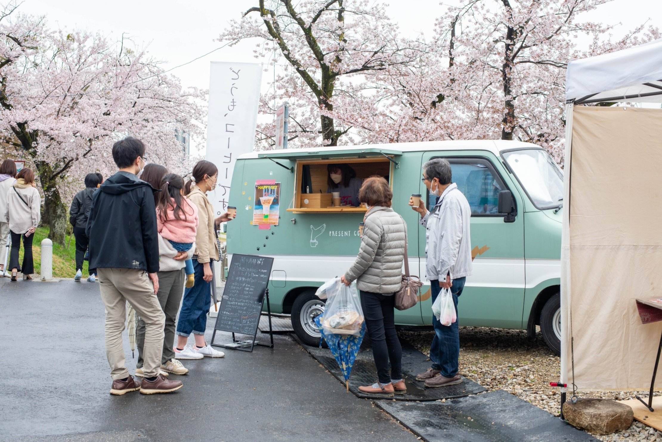 市内のキッチンカー事業者によるフード・ドリンクの販売が日替わりで行われます。ドリンクを片手に花見を楽しんだり、家族や友人とともに河川敷でピクニックしたり。乙川があることで生まれる豊かな風景を生み出すきっかけをつくります。