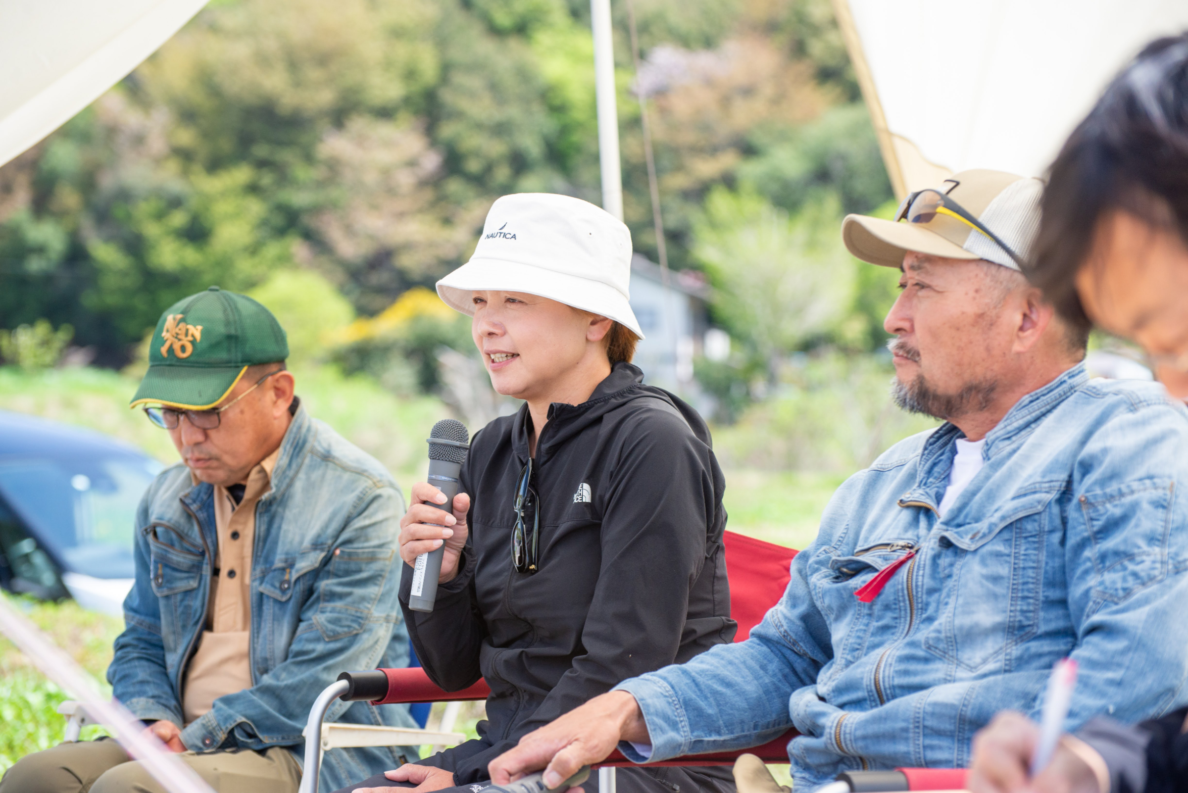 オープニングトークでは、プロジェクトの主催である山田農園代表 山田健一さん、山田明日香さんに加え、野菜づくりの講師の金森昭憲さんより、山田農園の有機農業の取り組みや、農業の未来に向けた想いなどをお話しいただきました。