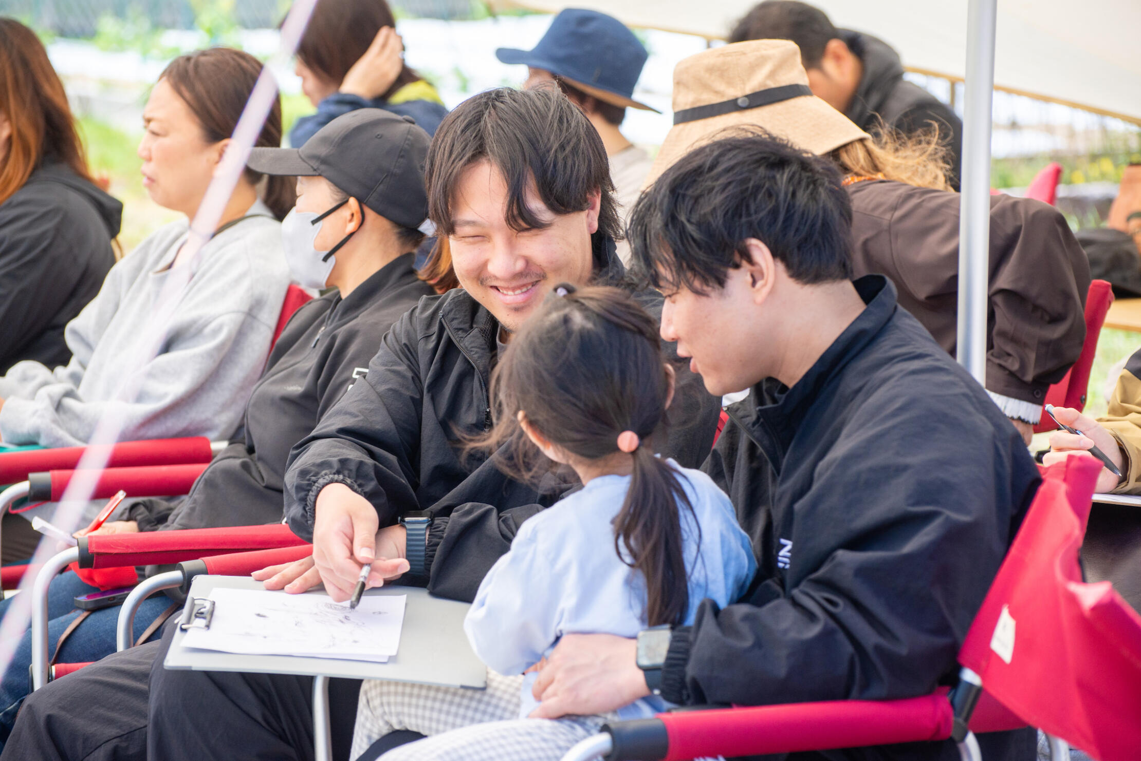 プログラムの前日は大雨に苛まれるも、迎えた第1回プログラム当日。天気が崩れることもなく、岡崎市高隆寺町にある〈山田農園畑のカフェ〉の自然豊かな田んぼの広がる屋外で無事に開催することができました。本レポートでは、当日の様子を、写真とともにご紹介できればと思います。