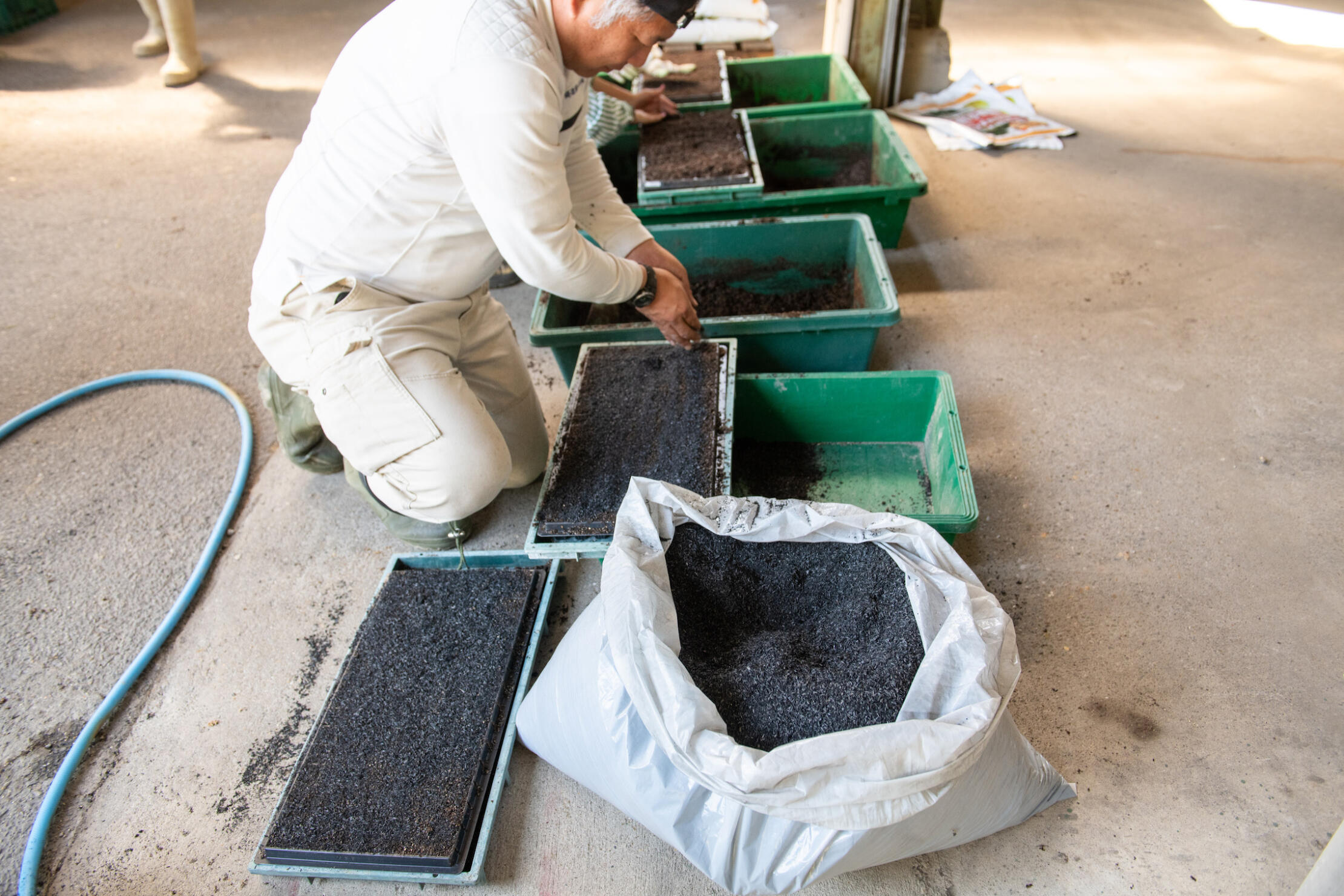 野菜づくり講師の金森さんと、技能実習生として来日されているインドネシア出身のヨガさんの指導のもと、とうもろこしのタネの特徴や、種まき培土、発芽のプロセスなど実をもって学ぶことができました。