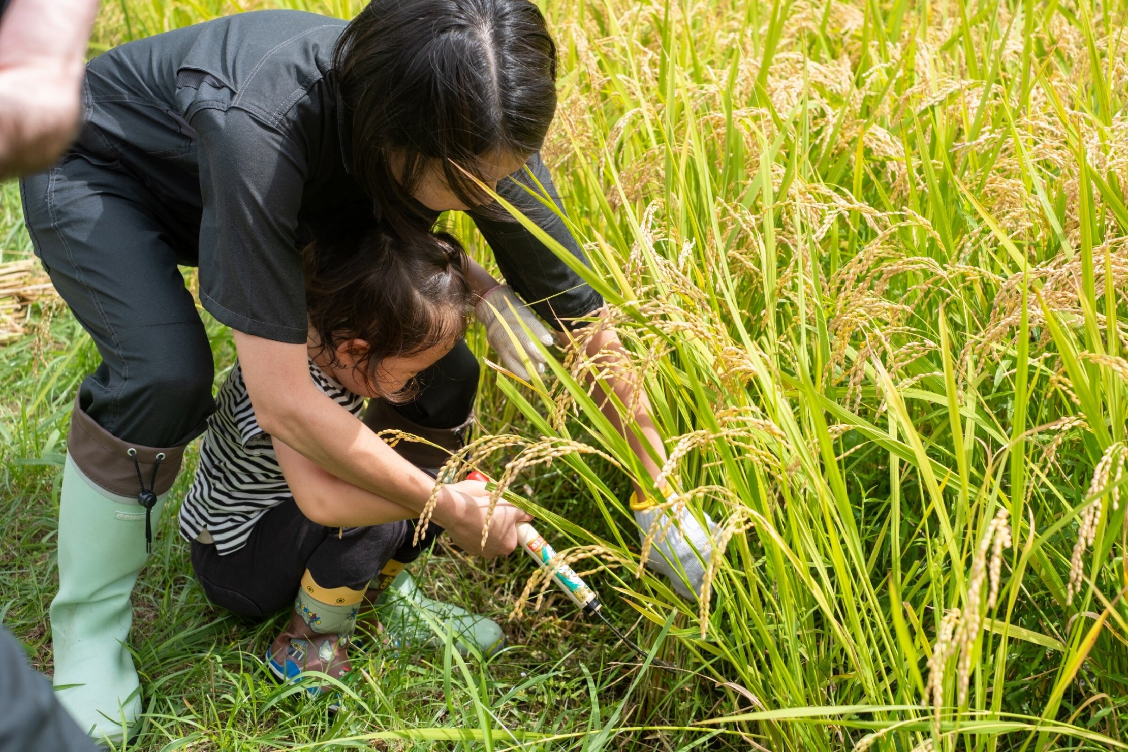9月15日(日)、2024年度となりの田んぼプロジェクトステップアップコース第5回「稲の観察と稲刈り」を実施しました。大切に育ててきた稲にお米が実り、黄金色に変わりいよいよ稲刈り!みんなで待ち望んだ日でした。