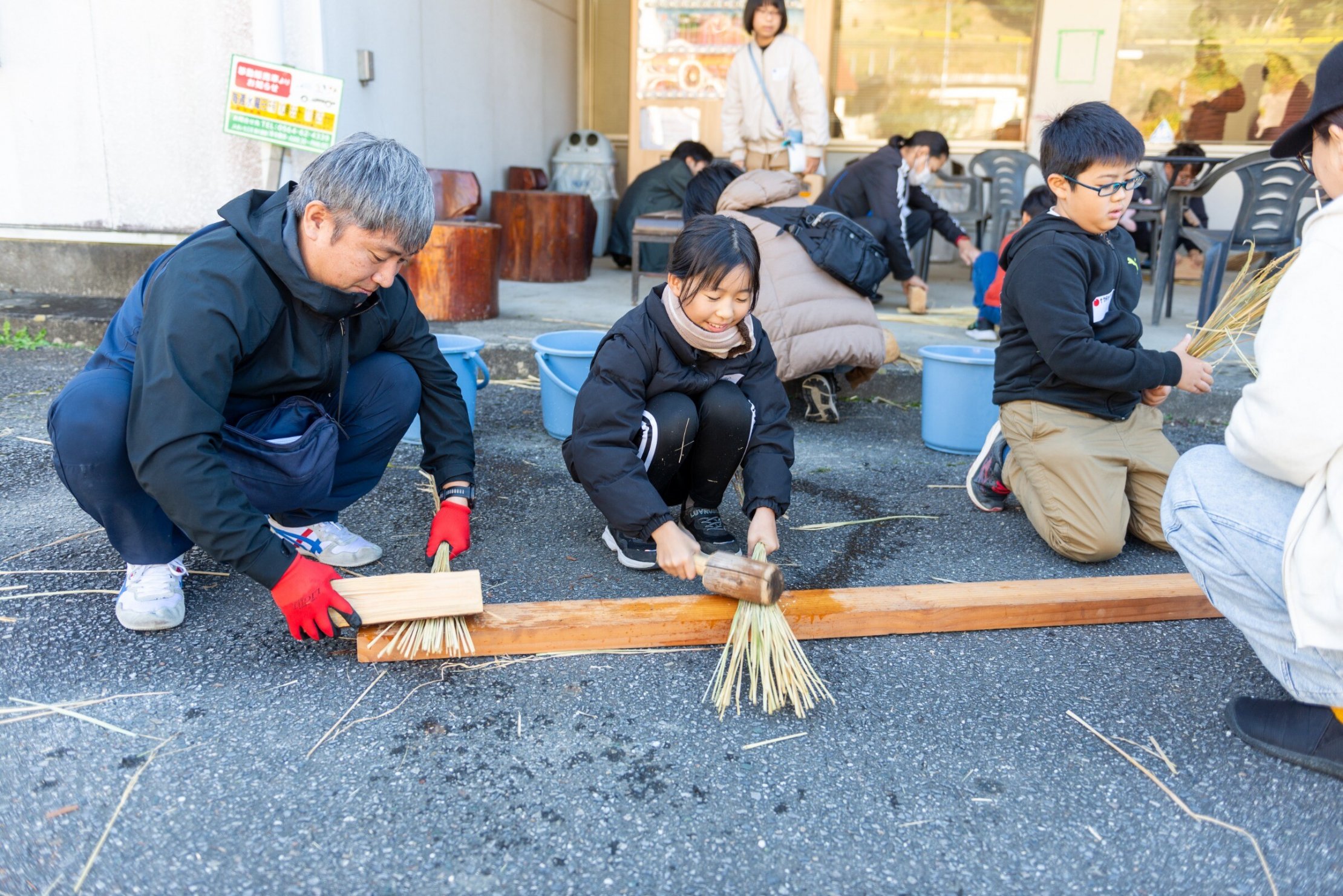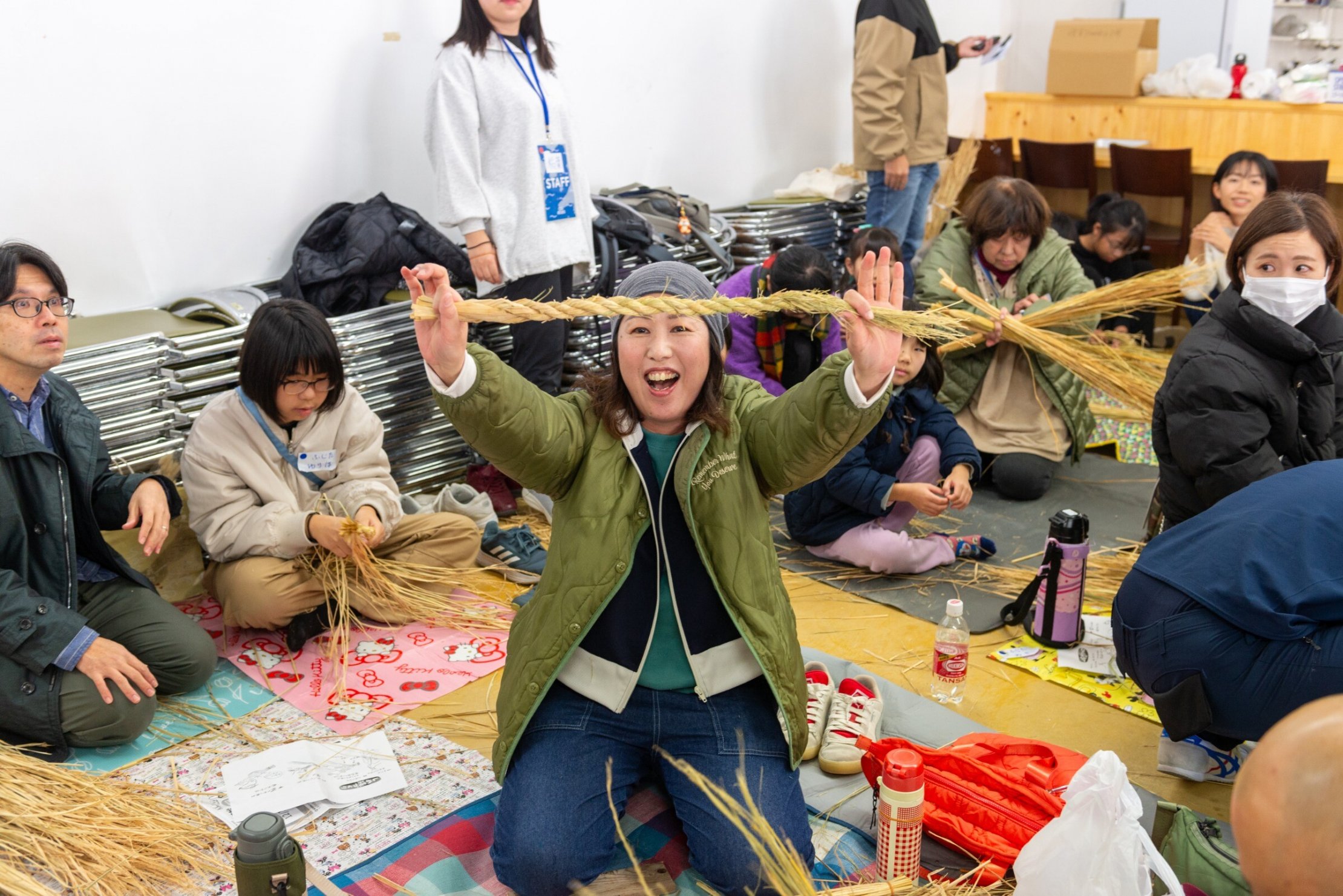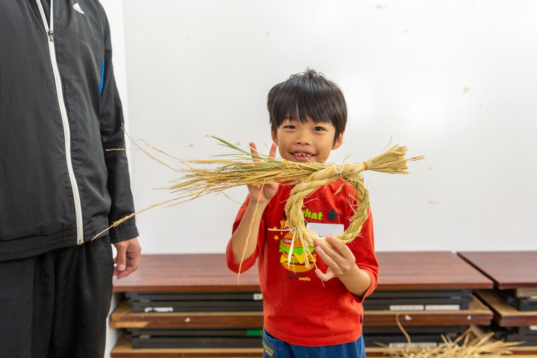 チャレンジコース開催レポート:『年越しの準備に!収穫後の稲わらを使って、みんなでしめ飾りを作りました』