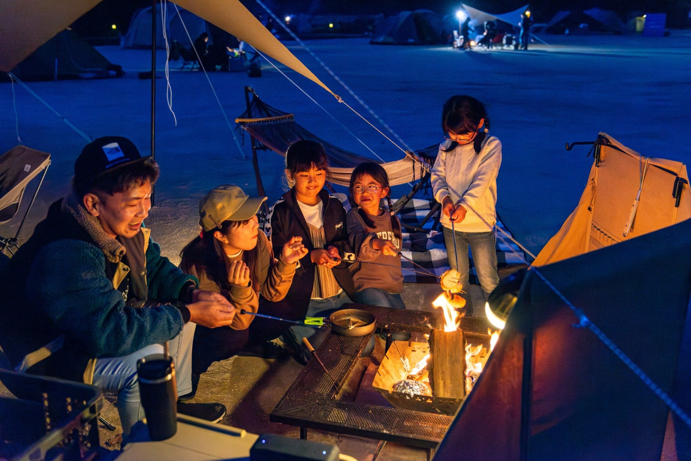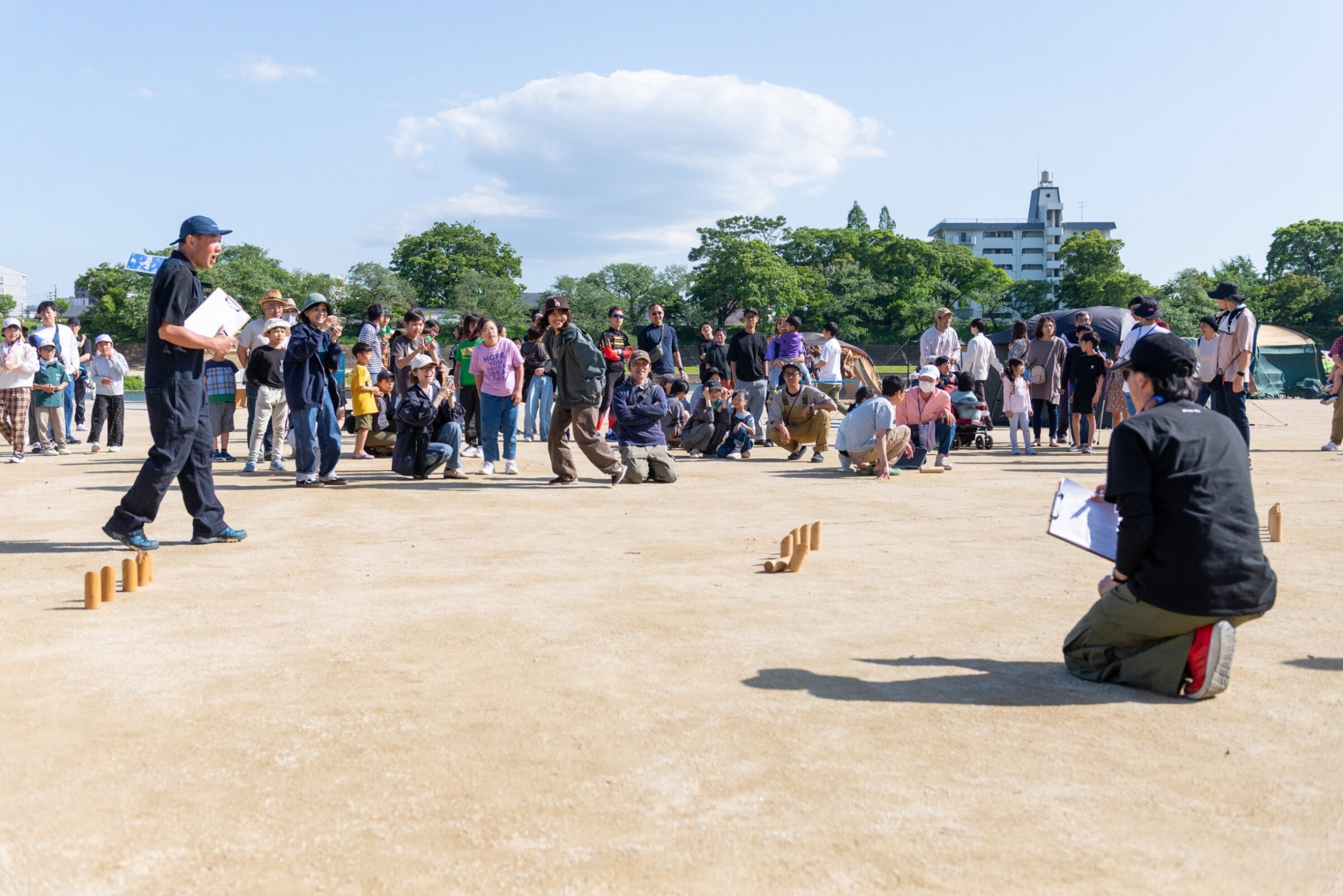 また、今回のイベントではキャンプ利用者との交流を目的に、さまざまなミニゲーム(大モルック大会、ドラム缶風呂体験、薪割り体験、焚き火ラウンジ等)を用意し、スタッフも一緒になり楽しませていただきました。なかでも「大モルック大会」は両日とも大盛り上がりで、両日ともに30組近いお客様にご参加いただくことができました。本戦出場の12チームを決める予選会から、優勝チームを決める本戦まで計3試合のゲームが行われ、笑いあり涙ありの大会となりました。どの試合も味方を応援する声援もさながら、相手チームや他チームの試合を一緒になって盛り上げる声援など、あたたかな雰囲気に会場が包まれていました。そして、夜には参加者もスタッフもみんなで一緒に「焚き火ラウンジ」。それぞれが飲み物やお菓子を持ち込んで焚き火を囲みながら、参加者やスタッフが交流し、皆さんとの関係性をさらに深める時間となりました。