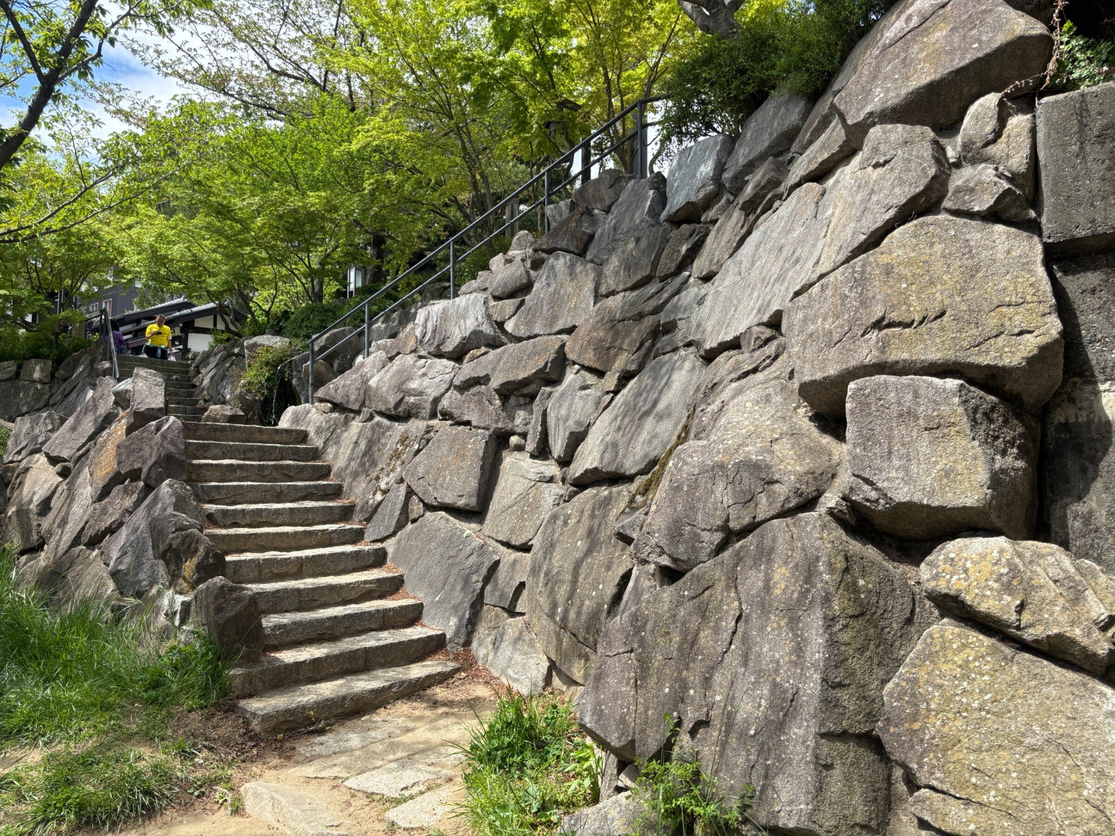 女鳥羽川は、岡崎の伊賀川とスケール感が近く、護岸の石垣や舗装されていない土手に風格と親しみやすさを感じます。上流方向にも下流方向にも山が間近に見え、川と山の関係を強く感じられるのは岡崎にはない特徴と言えます。