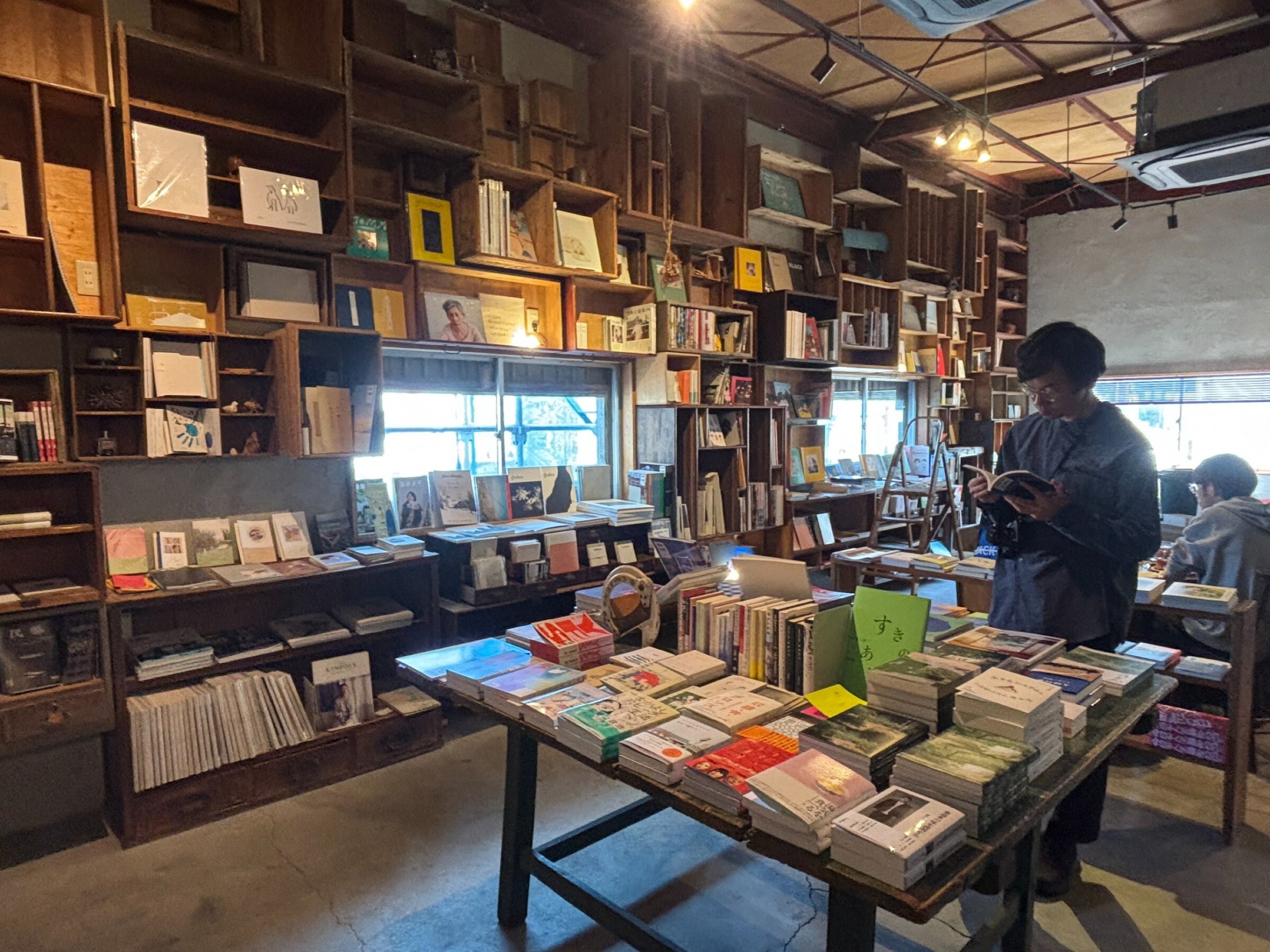 岩ヶ谷くんとは、これまたお目当ての一つだったブックカフェ栞日で待ち合わせ。栞日は諏訪のリビルディングセンター(通称:リビセン)の東野さんがリビセン立上げ前にリノベーション施工を手がけた店舗で、古材を活かした落ち着きある店舗の雰囲気と素晴らしい本のセレクトに感銘。オーナーの菊池さんは、この少し前に岡崎を訪れており、ANGLEの飯田くんを通じて岩ヶ谷くんと知り合われたというご縁で(前日の講演会にもご参加いただいた)まちなかを案内していただきました。