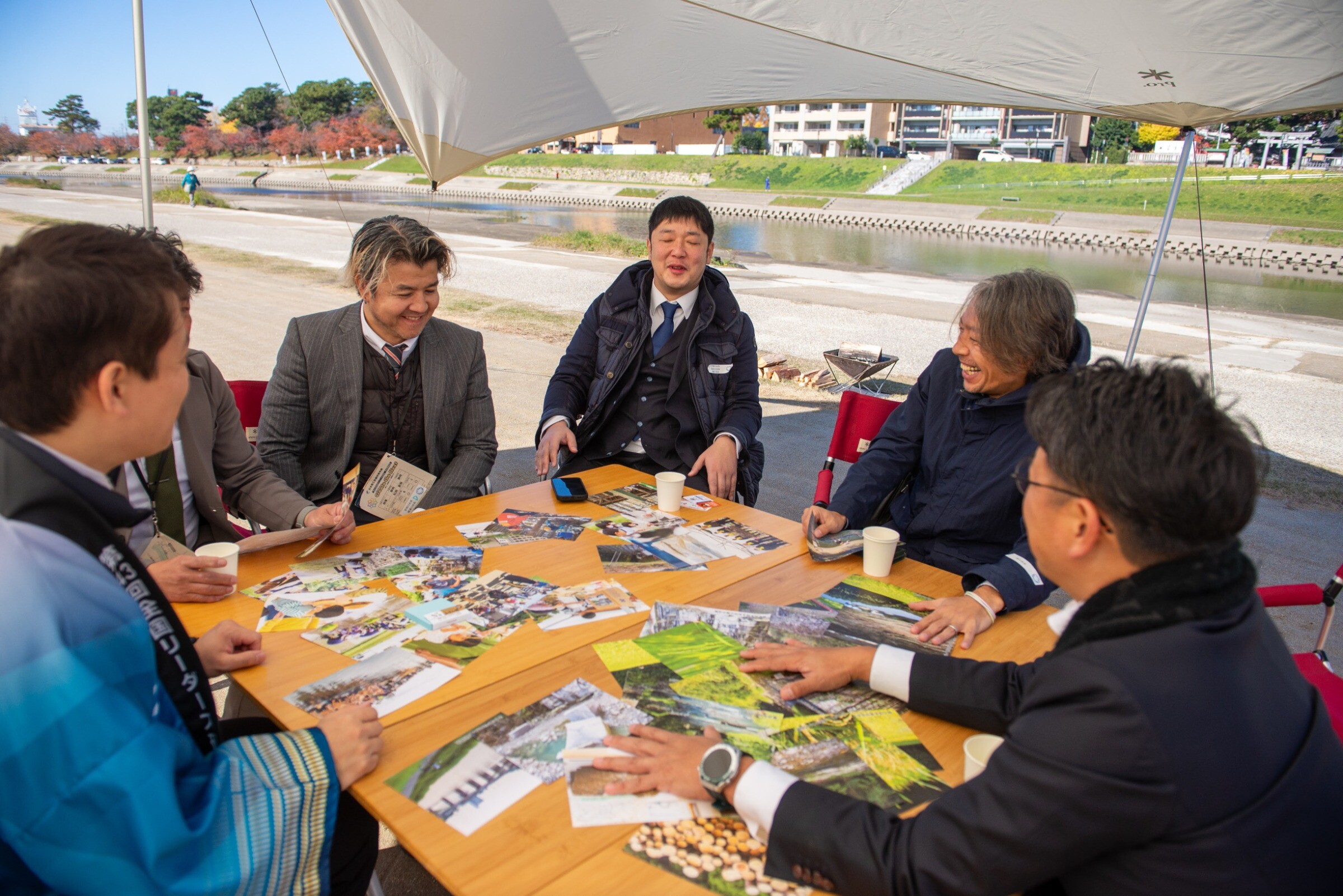 後半のワークショップでは乙川流域で感じることができる、木・水・石・米の4つの自然の「風景写真」とそれらをテーマに実施するONE RIVERの「活動写真」の2種類の写真を用意し、それらの自由な組み合わせから、見えないつながりから事業や活動を生み出すONE RIVER的思考方法を実践するプログラムを実施しました。正解もはずれも無いワークショップに、普段は合理的な判断を求められることが多い経営者の皆さんは、はじめは困惑しつつも、すぐにコツを掴み、写真の中から課題を見出し、それらを事業・活動として解決をはかるという実践的なアイデアをたくさん披露いただく場になりました。