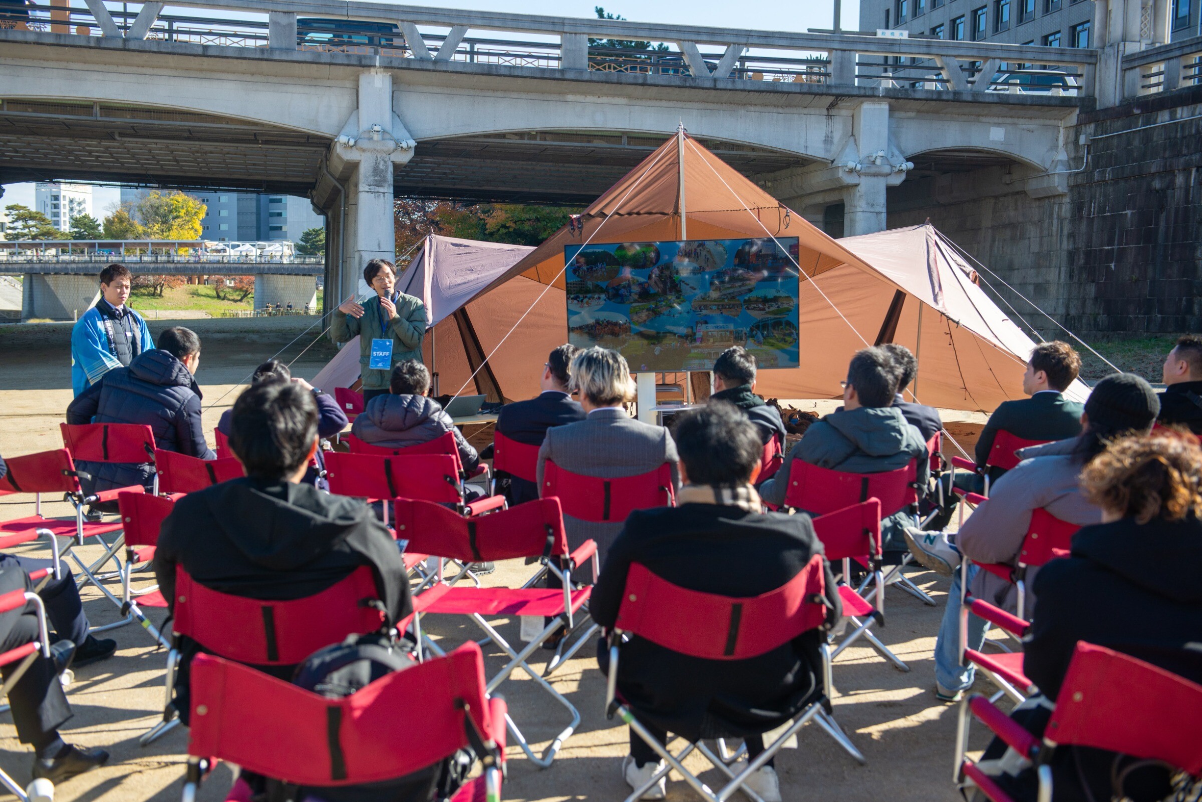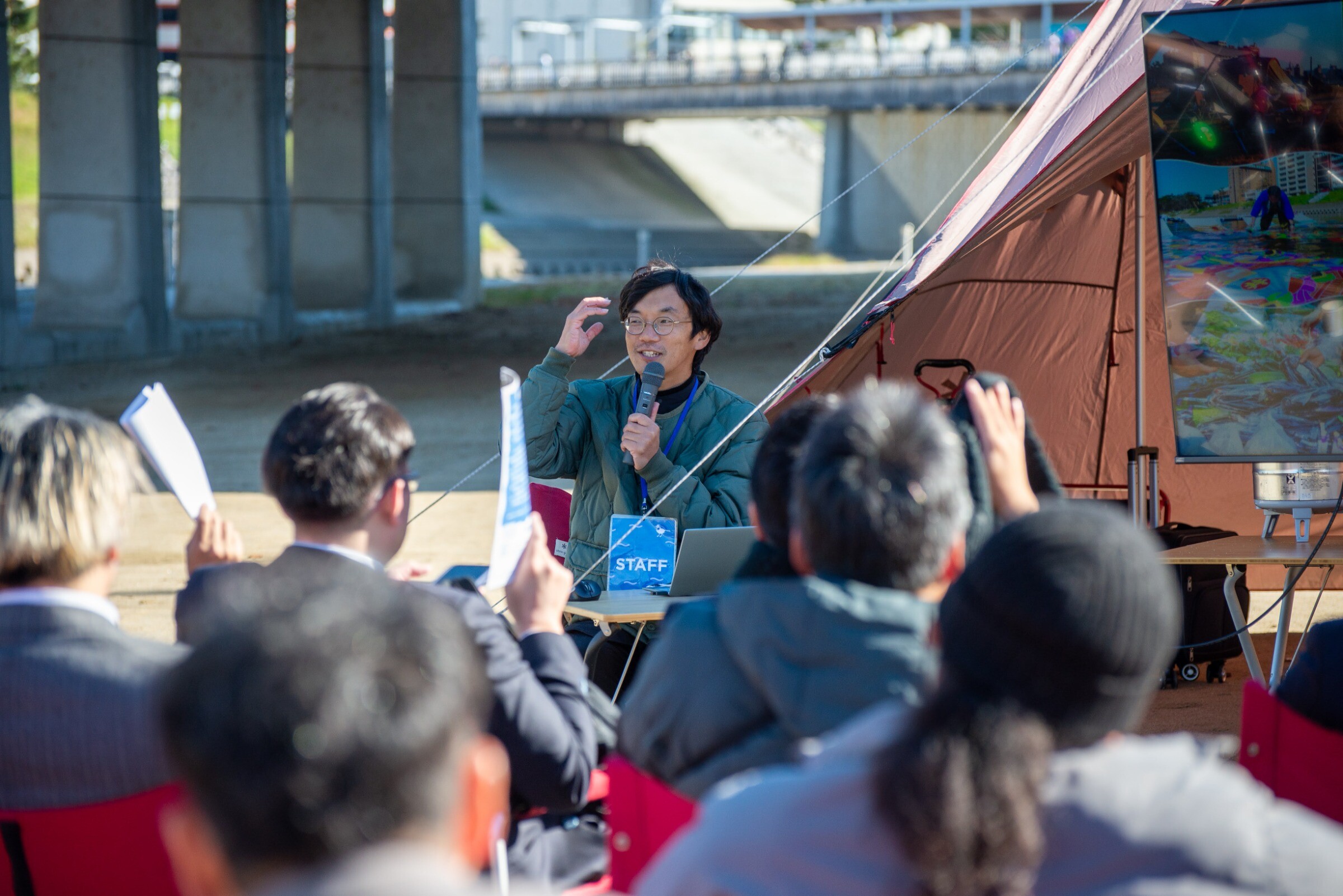 当日は「川とともに暮らす まちなかの大自然「乙川」から学ぶ公共空間活用」というタイトルにて分科会を開催、前半は岩ヶ谷が講師を担当し、これまでの乙川での取組みの様子やONE RIVERのコンセプト等を紹介する講演会、後半は「ONE RIVER的思考から、まちとのつながりや事業の強みを発見しよう!」というタイトルにてグループに別れてワークショップを実施しました。