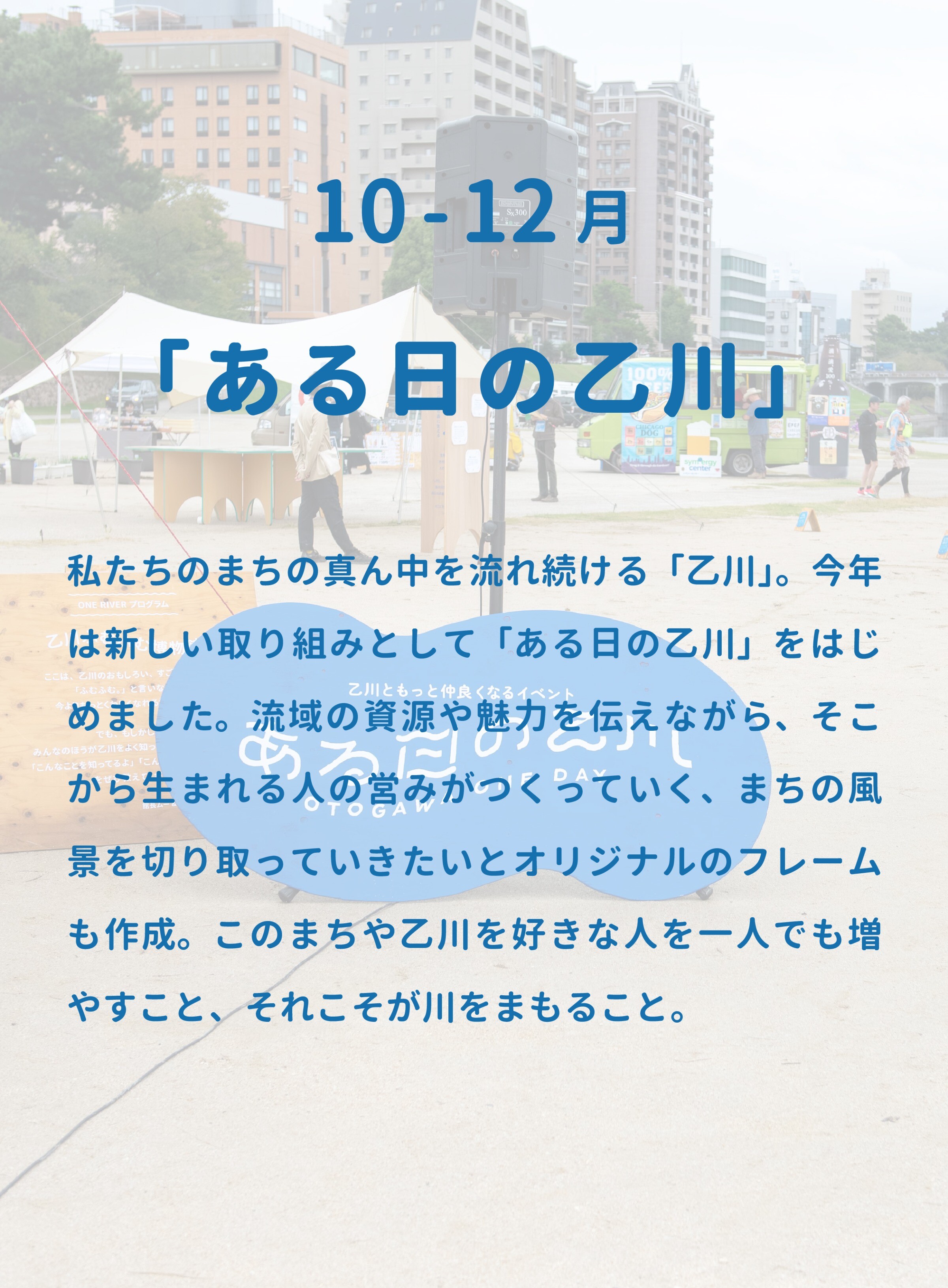 …など。総じて「川とともにある暮らしの解像度が上がった」という言葉にまとまりました。これまで自分たちが乙川を楽しみ、取り組んできたことが、川と人の暮らしを良い状態に保つことにつながっていると実感を伴いながら明確になってきた…「川をまもる」をより意識して楽しんだ1年と言えるのではないでしょうか。私たちの暮らしに豊かな恵みをもたらしてくれる一方、災害や水難などによって時に深刻な被害を引き起こすことのある川。自然のもつ両面性をとらえてまもることの大切さや困難を感じることの多い年だったのかもしれません。