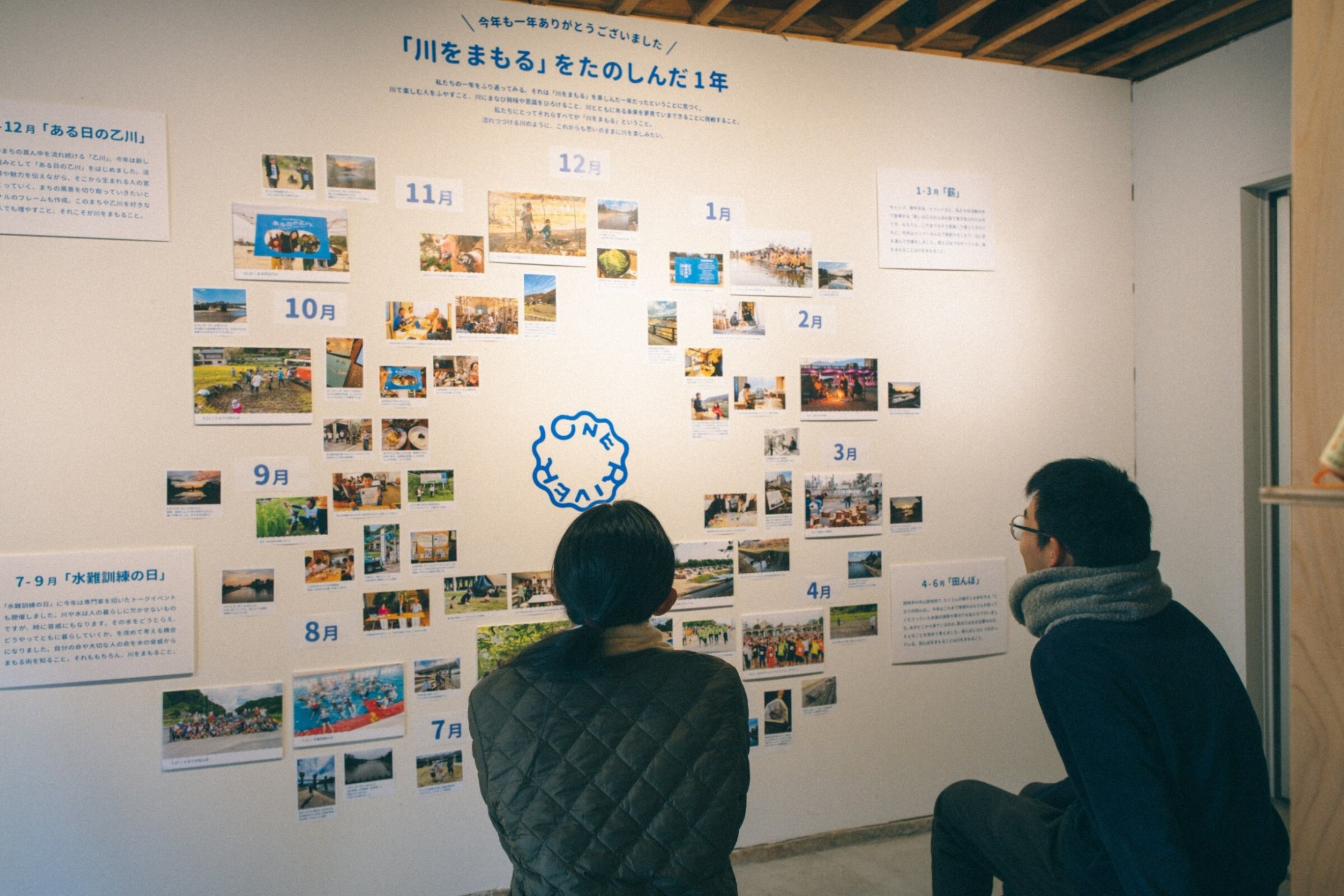2025年12月に偶隅ビル1Fオープンスペースをお借りして開催した「2025年の川とともにある暮らし展」。ONERIVERの一年のできごとや思い出を写真とコメントで振り返りながら、「川とともにある暮らし」をとらえてみる試みです。円形に配置した写真とコメントを見て、ONERIVERの今年の活動や思い出の共有ができていましたら嬉しいです。