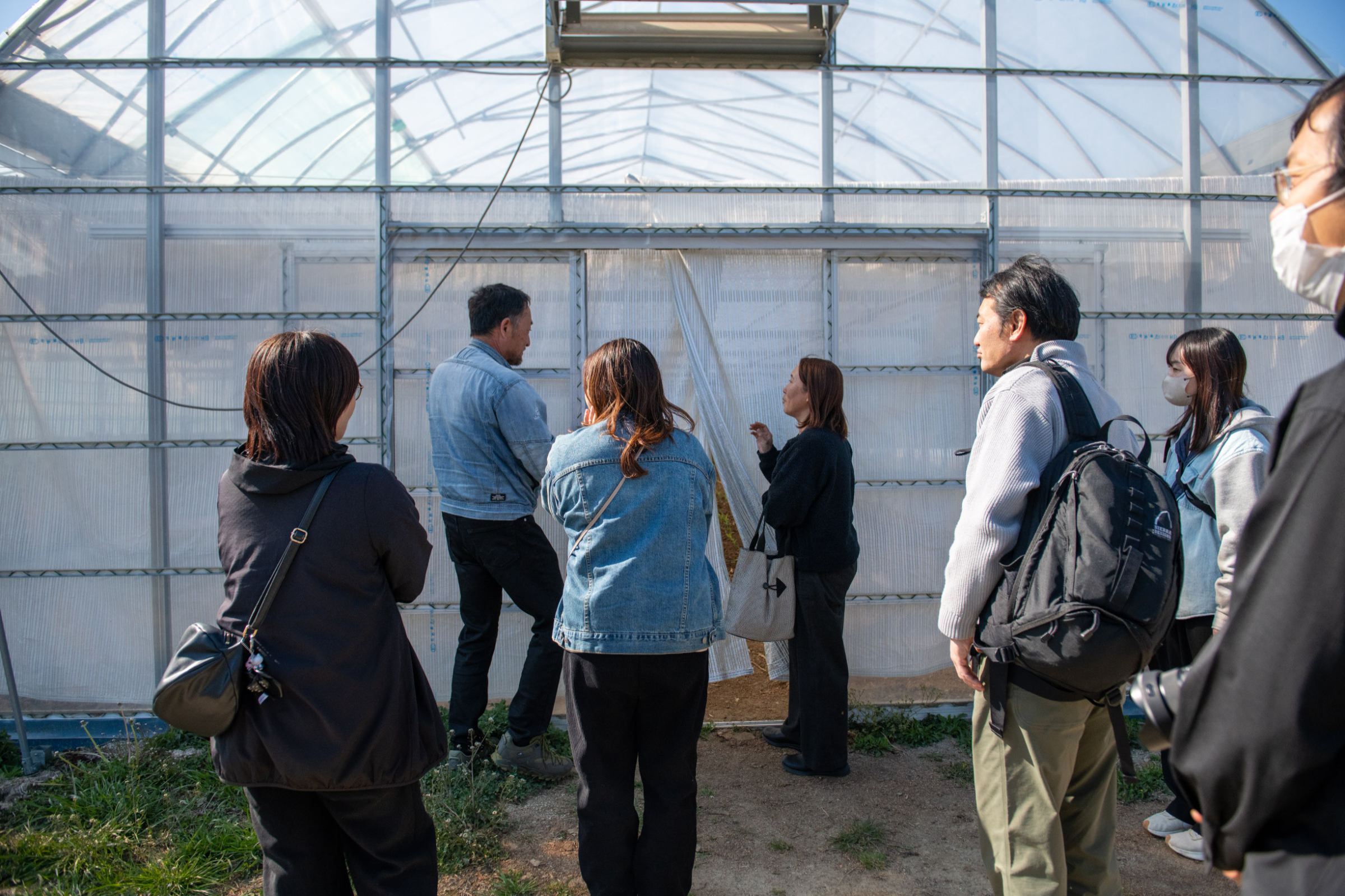 実際の畑や野菜を前にし、ここでも参加者からたくさんの質問や疑問が寄せられ、それらに一つ一つ丁寧にお答えしていきます。説明会だけでは分からない、畑の空気や土の様子を実際に感じながら、参加者のみなさんはこれから始まるプログラムへの期待を膨らませる。そんな時間となりました。