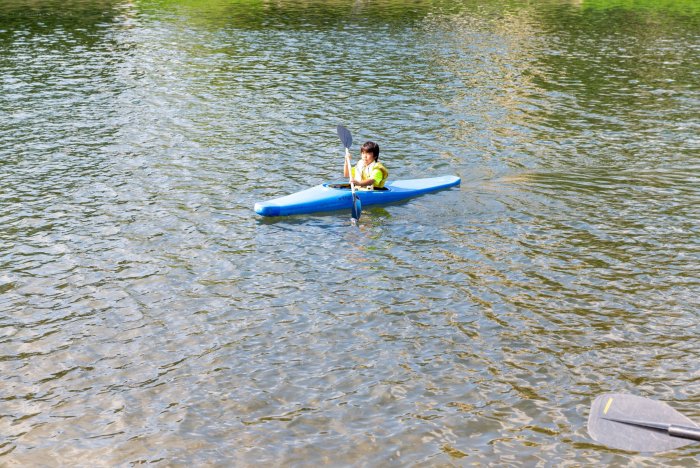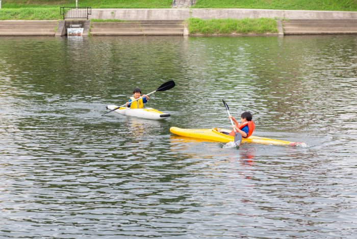 乙川を拠点に活動するカヌークラブ「岡崎KPC」が運営し、カヌー、水を漕ぐパドル、ライフジャケットを貸出します。カヌーは1人乗りだけでなく、2人乗りもあるので、親子で一緒に乗ることもOKです。慣れて進めるようになれば、川面から岡崎城を見上げることもできます。はじめての方や久しぶりの方にはスタッフが乗り方を教えます。安全第一で水上散歩を楽しみましょう!